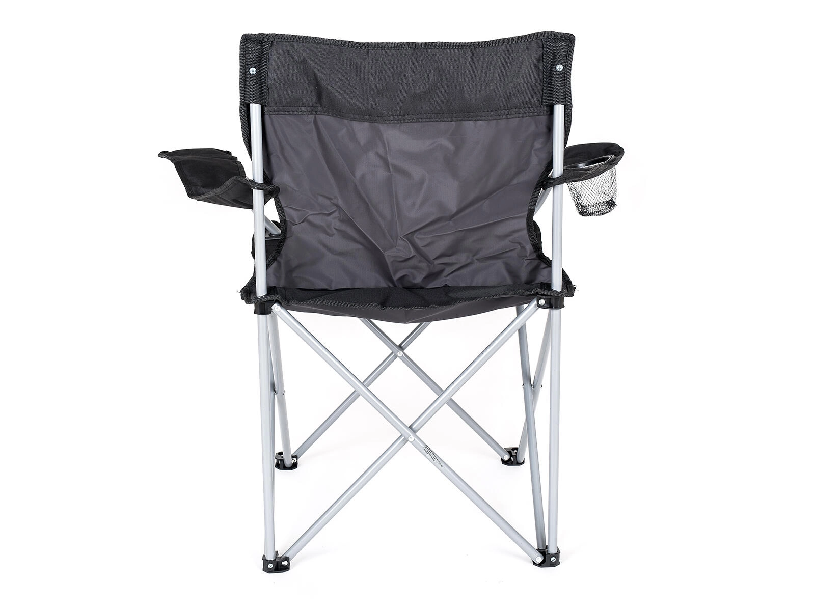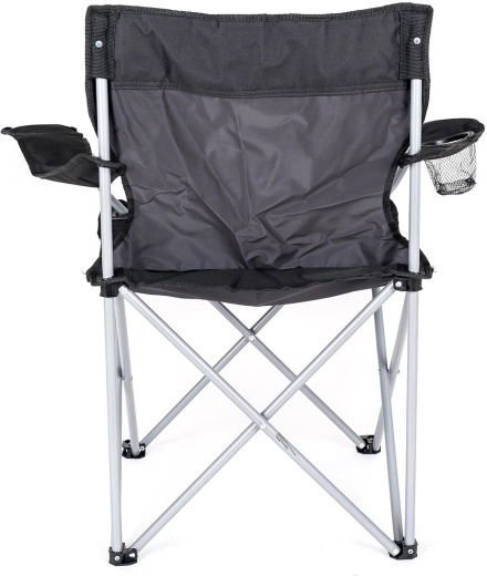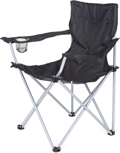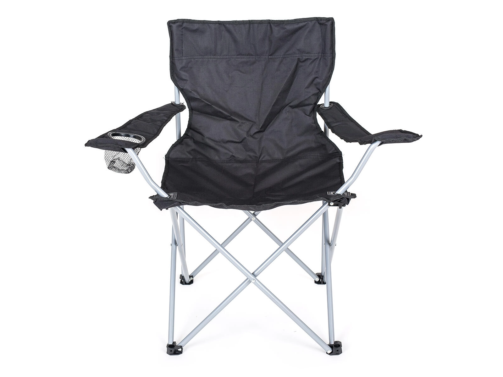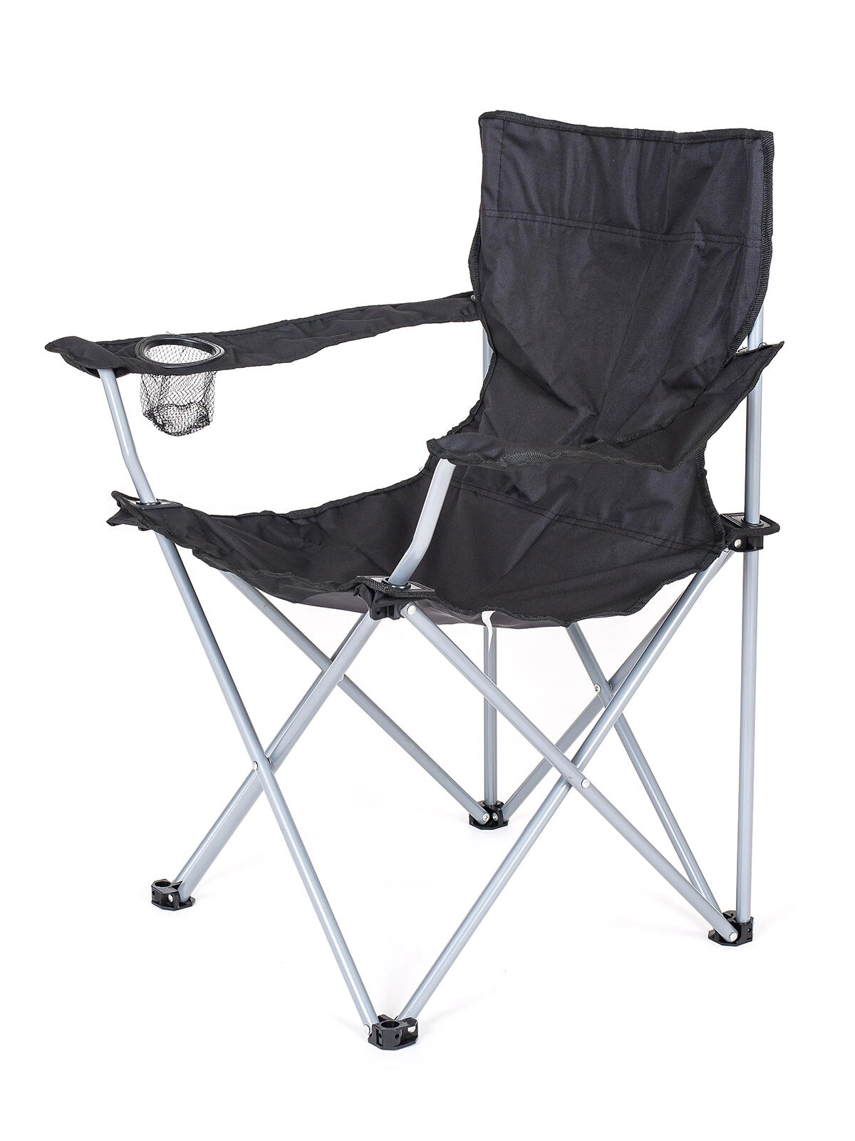Lehké a odolné skládací kempingové křeslo FISH v černé barvě nabídne pohodlné sezení s područkami a praktickým držákem nápoje. Díky ocelové konstrukci a potahu z 600D polyesteru s PVC povrchem je stabilní, snadno přenosné a rychle složitelné. Ideální na ryby, do kempu, na chatu i festivaly.