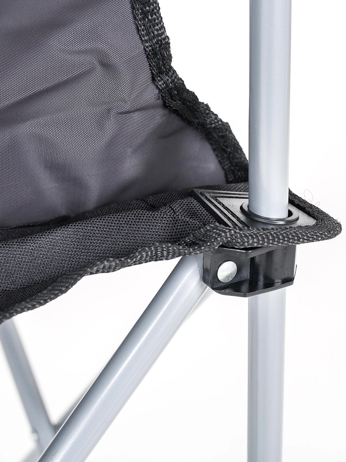 Křeslo má pohodlné područky, jedna z nich je vybavena integrovaným držákem nápoje. Díky kompaktním rozměrům po složení se snadno vejde do přiloženého transportního obalu a nezabere místo v autě ani v garáži.