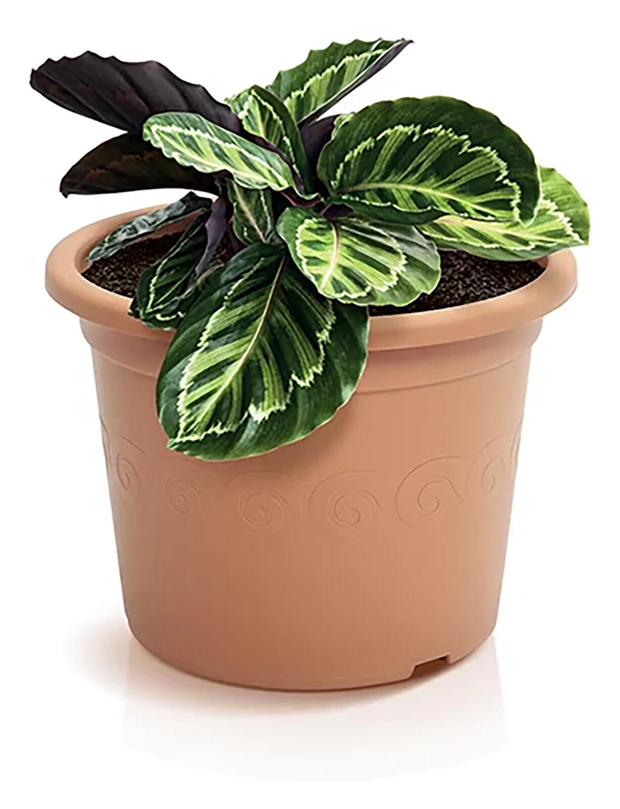Decentní reliéfní ornament a široký okraj dodávají květináči elegantní vzhled, který se hodí na parapet, balkon i zahradu. Integrovaný drenážní otvor (nebo připravená drenážní zóna) pomáhá předcházet přemokření kořenů a podporuje zdravý růst.