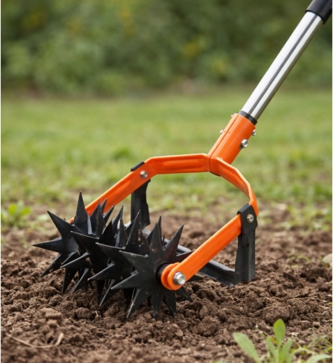 Dvojité hvězdicové kotouče s ostrými hroty efektivně rozbijí zhutněnou vrstvu, provzdušní půdu a usnadní růst kořenů.