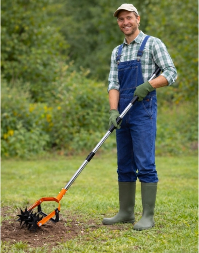 Rotační kultivátor je ideální pomocník pro každodenní údržbu zahrady. Ostré hvězdicové kotouče pronikají do půdy a zlepšují její strukturu a provzdušnění, což podporuje zdravý růst rostlin a omezuje šíření plevele. Díky lehké a zároveň odolné ocelové konstrukci zvládnete rychle uvolnit povrch do hloubky několika centimetrů bez použití velké síly.