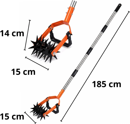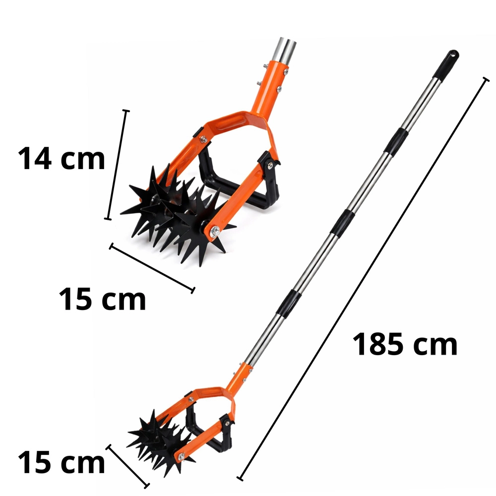 Výškově nastavitelná teleskopická násada (cca 110–185 cm) přináší maximální komfort při práci v řádcích, na záhonech i okrajích trávníku. Ergonomická, protiskluzová rukojeť poskytuje jistý úchop i při delším používání. Nástroj je vhodný pro pletí mezi řádky, kypření po zavlažování a přípravu půdy před výsevem.