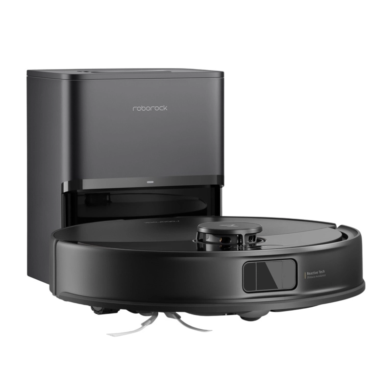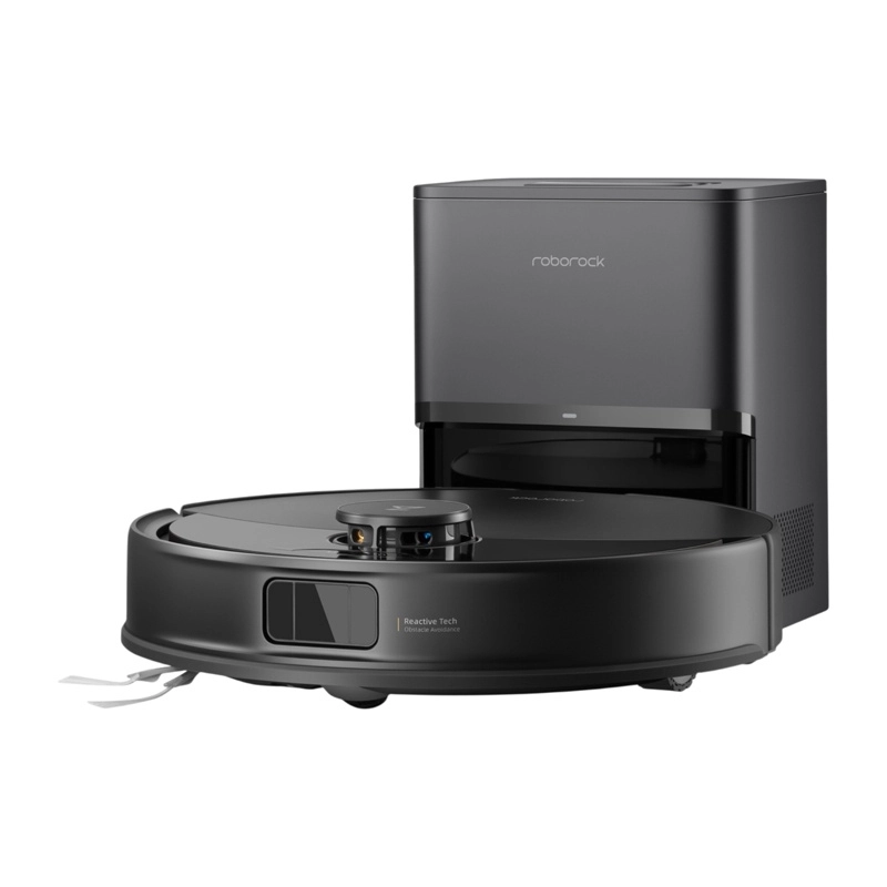 Stanice RockDock Plus sama vysype prachovou nádobu robota do sáčku s účinnou filtrací alergenů – výměna stačí zhruba jednou za 7 týdnů. Hlavní V‑kartáč s gumovými segmenty a hřebenem JawScrapers a asymetrický boční kartáč minimalizují namotávání vlasů.