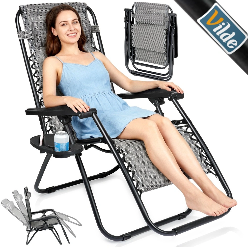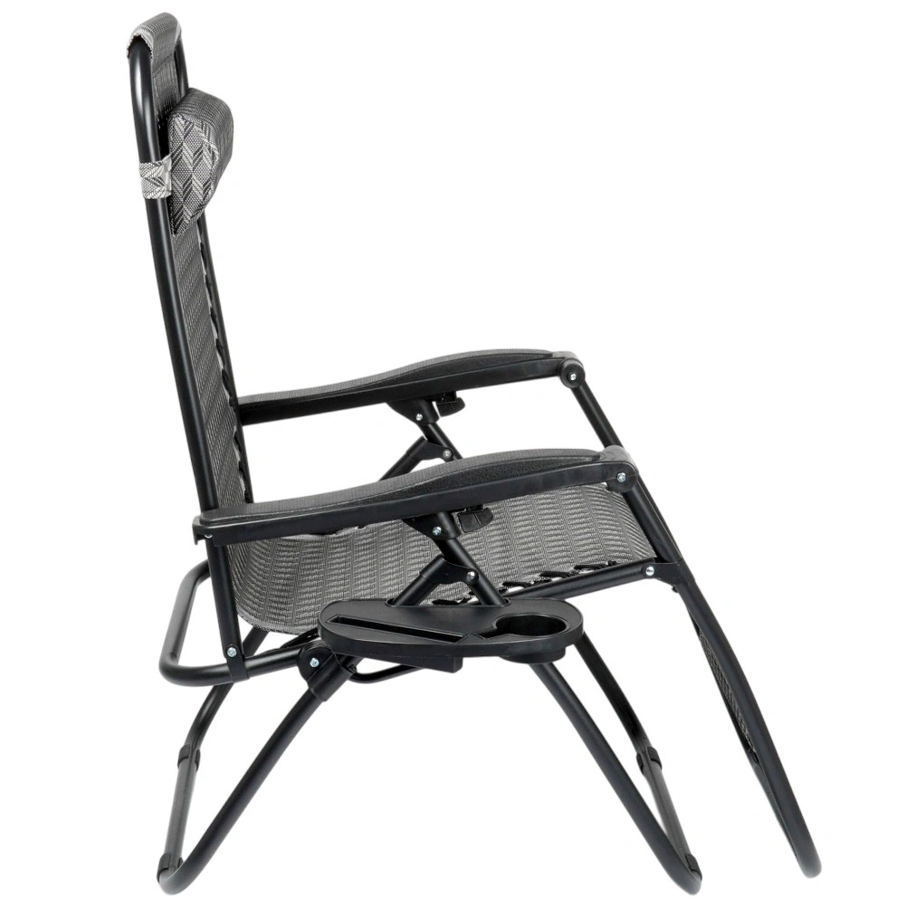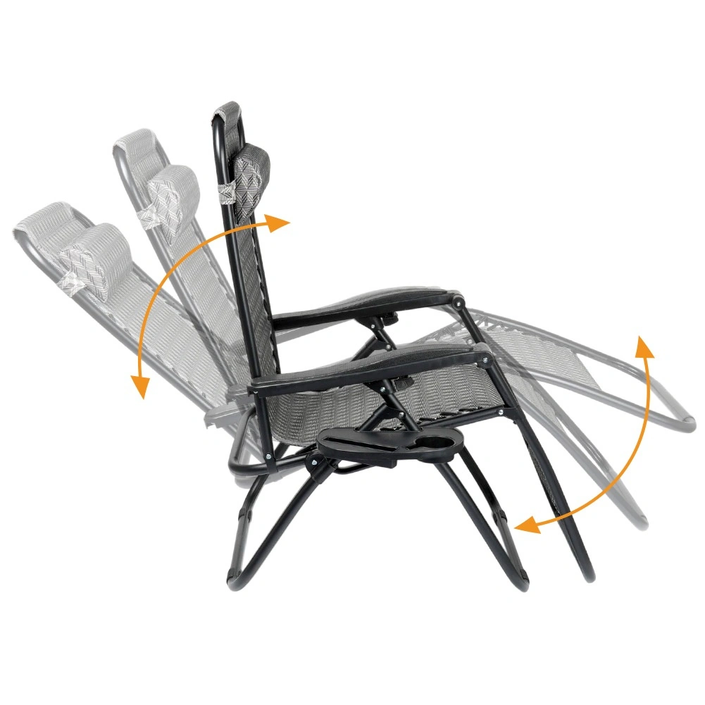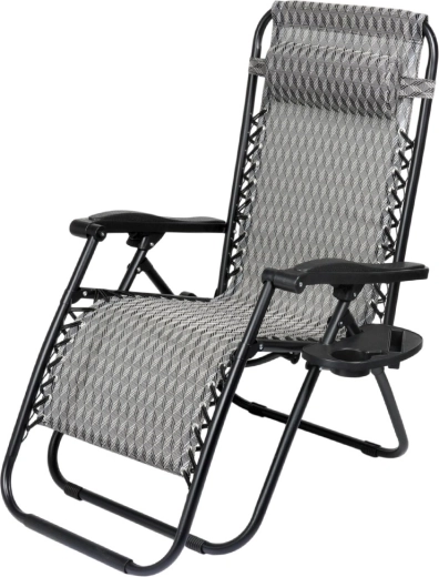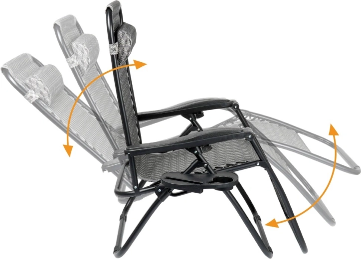 Užijte si dokonalý odpočinek na pohodlném gravitačním lehátku s plynulou regulací polohy. Díky ergonomické konstrukci se lehátko přizpůsobí postavě, uleví zádům a páteři a nabídne polohu sedačku, pololeh i ležmo. Odolný kovový rám, prodyšná šedá textilie s vzorem, odnímatelný podhlavník a boční stolek s držákem nápoje dělají z lehátka ideální volbu na zahradu, terasu, balkon i kempování.