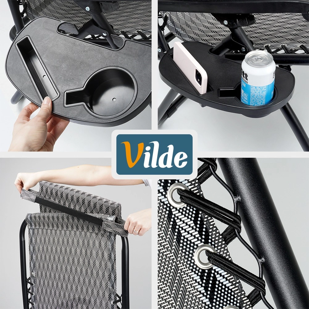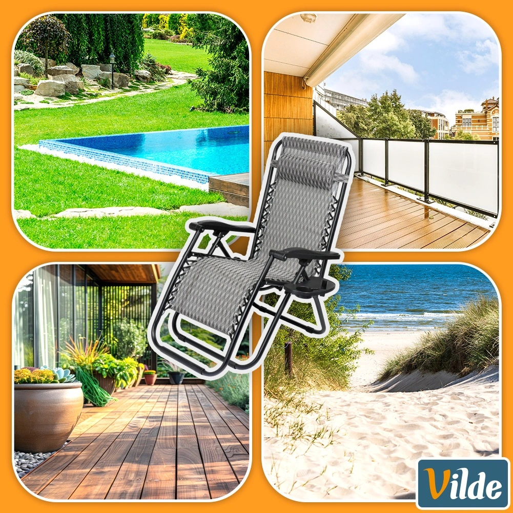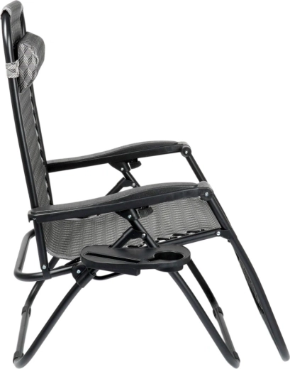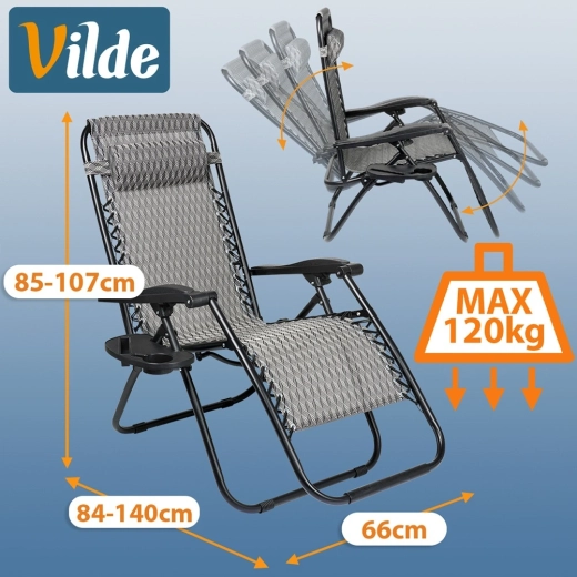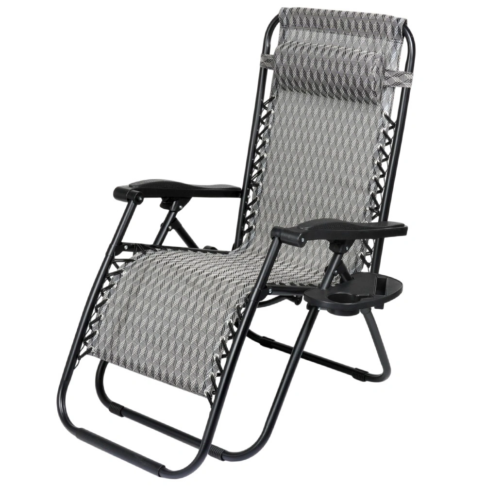 Užijte si dokonalý odpočinek na pohodlném gravitačním lehátku s plynulou regulací polohy. Díky ergonomické konstrukci se lehátko přizpůsobí postavě, uleví zádům a páteři a nabídne polohu sedačku, pololeh i ležmo. Odolný kovový rám, prodyšná šedá textilie s vzorem, odnímatelný podhlavník a boční stolek s držákem nápoje dělají z lehátka ideální volbu na zahradu, terasu, balkon i kempování.