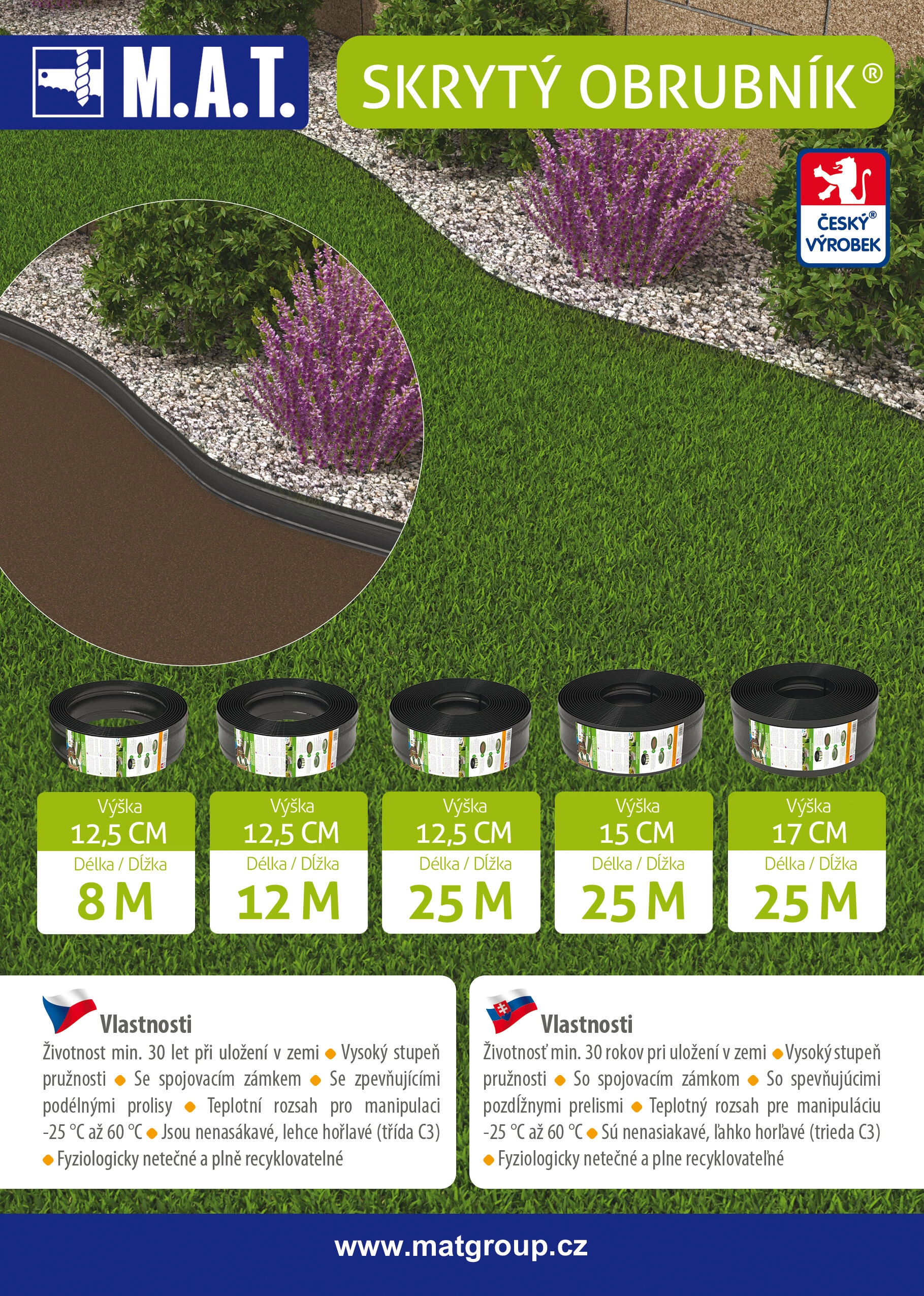 Role o délce 25 m umožňuje rychlou instalaci i na větších plochách a plynulé vytváření křivek i pravých úhlů. Lem je odolný vůči povětrnostním vlivům a nenáročný na údržbu – ideální volba pro dlouhodobě upravený vzhled zahrady.