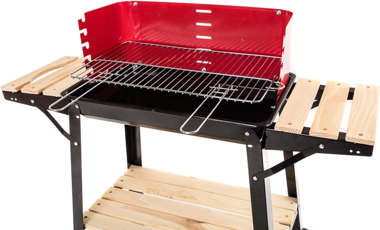 Praktická výbava včetně zástěny proti větru zlepšuje tah a stabilitu žáru. Dva boční stolky poskytují dostatek místa na náčiní i suroviny a spodní dřevěná police je skvělá pro uložení uhlí či servírovacích pomůcek. Díky promyšlené konstrukci je gril vhodný na balkón, terasu i zahradu.