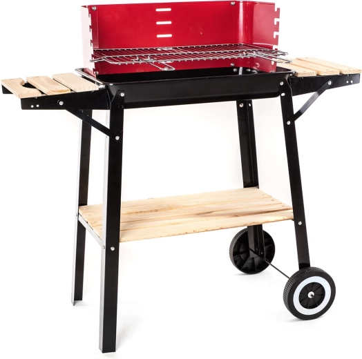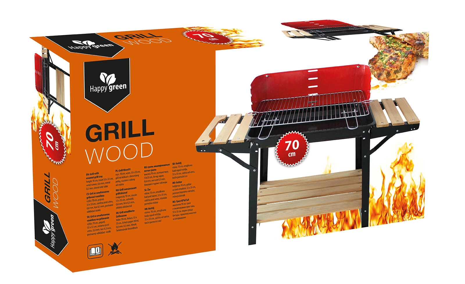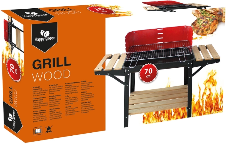 Praktický zahradní gril na dřevěné uhlí WOOD s rozměrem roštu 53 × 33 cm nabízí stabilní konstrukci, smaltovanou vanu pro dlouhou životnost a pochromovaný rošt pro rovnoměrné grilování. Díky zástěně proti větru, dvěma bočním odkládacím stolkům a spodní poličce z dřevěných latí je ideální pro pohodlné grilování na terase i na zahradě.