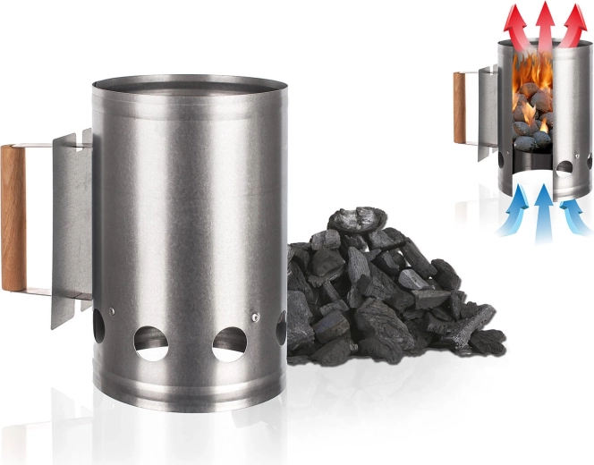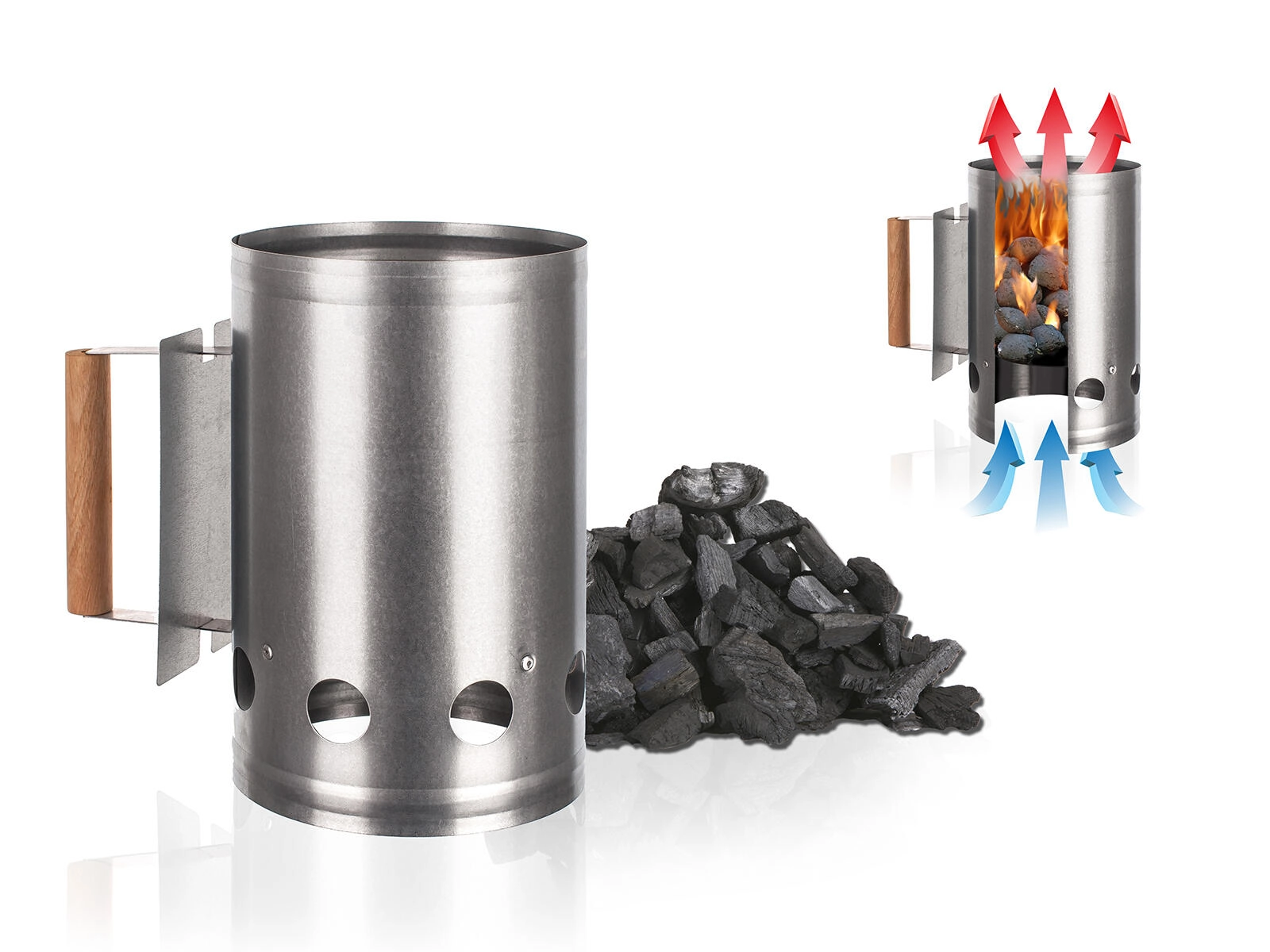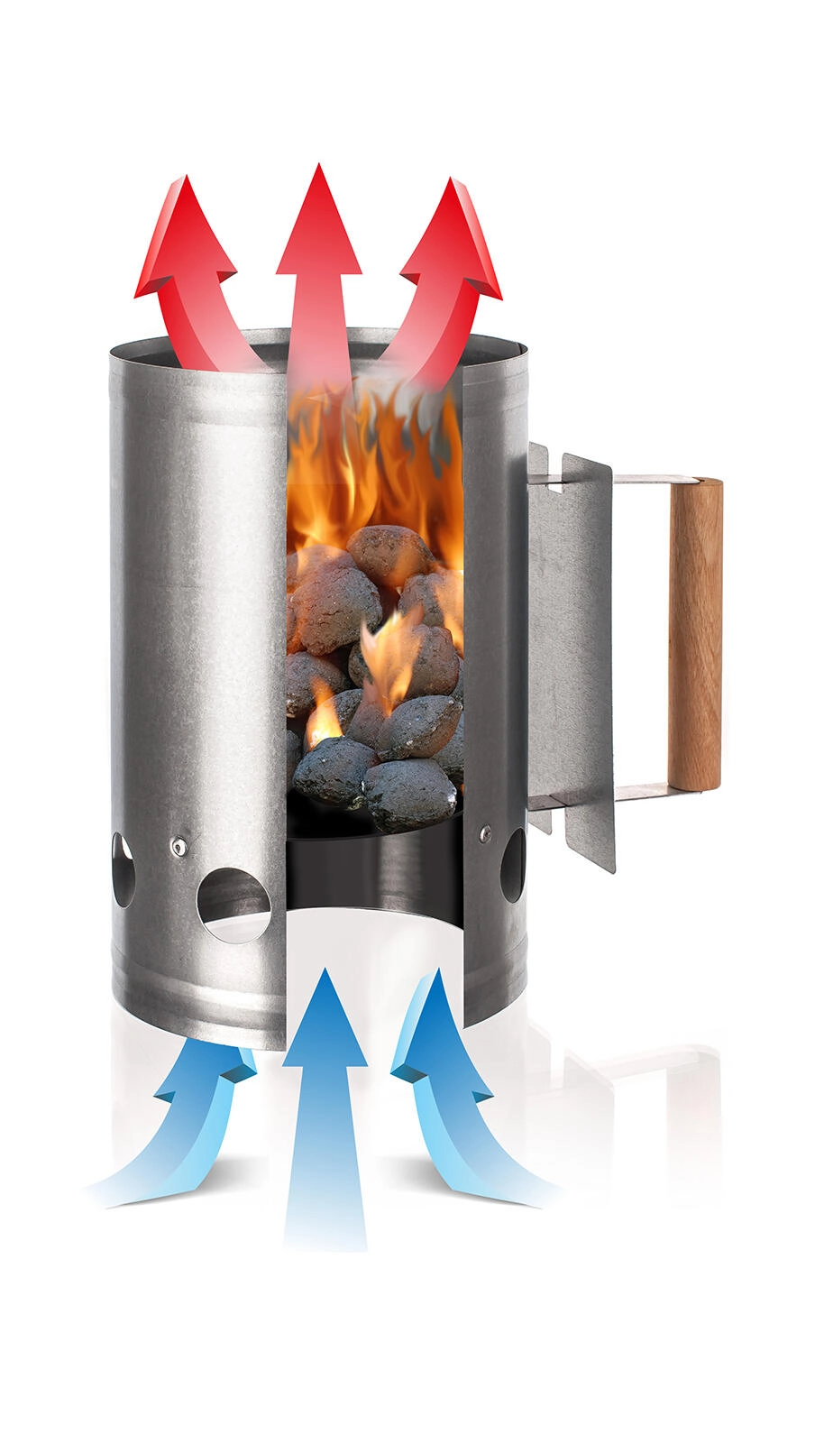 Už žádné zdlouhavé čekání na žhavé uhlíky. Tento pozinkovaný rozpalovač o průměru 16,5 cm a výšce 28 cm využívá komínový efekt k rychlému prohoření a rozžhavení uhlí i briket. Díky promyšleným větracím otvorům proudí vzduch rovnoměrně, což zrychluje zapálení a snižuje spotřebu podpalovače.