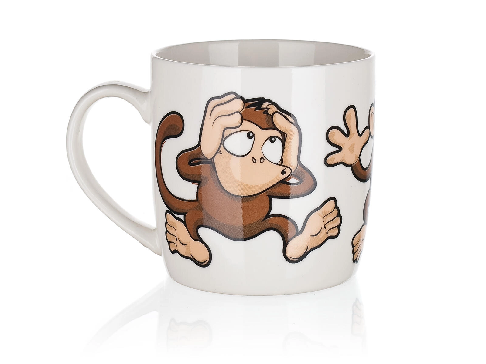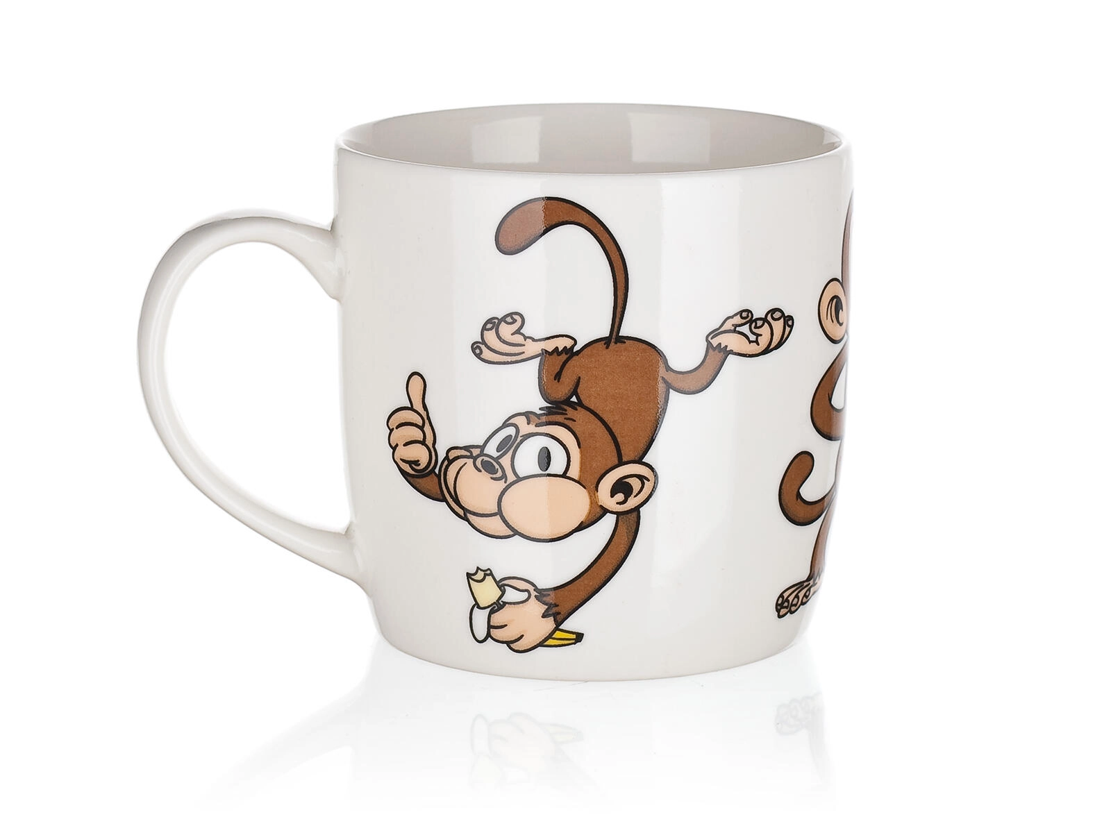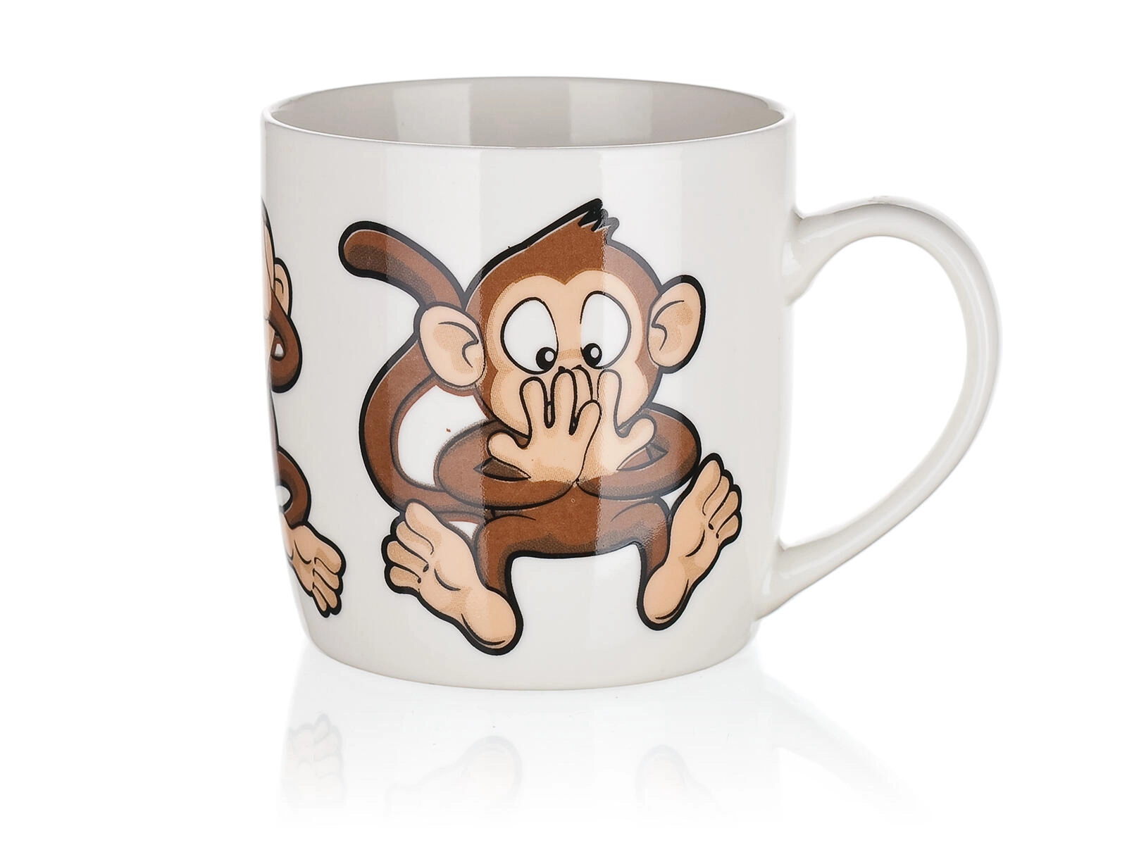 Roztomilý keramický hrnek o objemu 320 ml s hravým motivem opiček potěší děti i dospělé. Ideální na každodenní použití – na kávu, čaj či kakao. Vybírat můžete z mixu veselých dekorů, každý s lesklou glazurou a pohodlným uchem. Vhodný pro horké i studené nápoje a skvělý jako dárek.