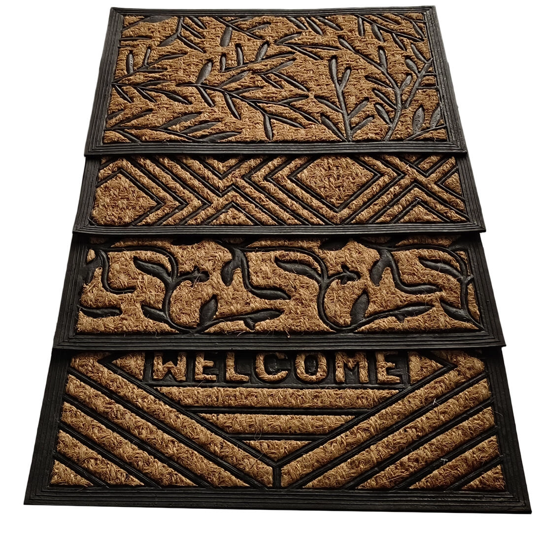 Na výběr je mix motivů – listy, ornamenty, geometrie nebo nápis WELCOME – pro atraktivní vzhled vstupu.