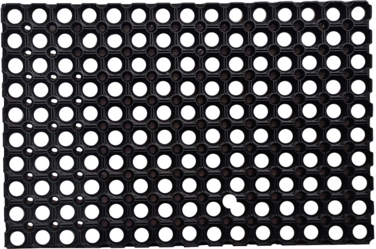 Tato děrovaná gumová rohož je praktickým řešením pro každý vstup. Odolný materiál zajišťuje dlouhou životnost, zatímco otvorová struktura efektivně zachycuje bláto, písek a vodu, které propadnou pod povrch rohože. Díky tomu zůstává horní strana déle čistá a bezpečná.