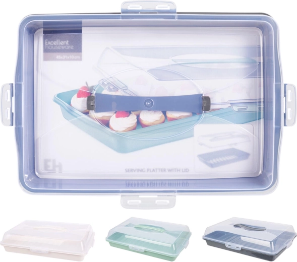 Uchovávejte a servírujte své oblíbené dobroty stylově a hygienicky. Tento podnos s praktickým krytem je ideální pro dorty, chlebíčky, zákusky i slané pochoutky. Lehký a odolný materiál umožňuje snadnou manipulaci a kryt spolehlivě brání přístupu prachu a hmyzu.