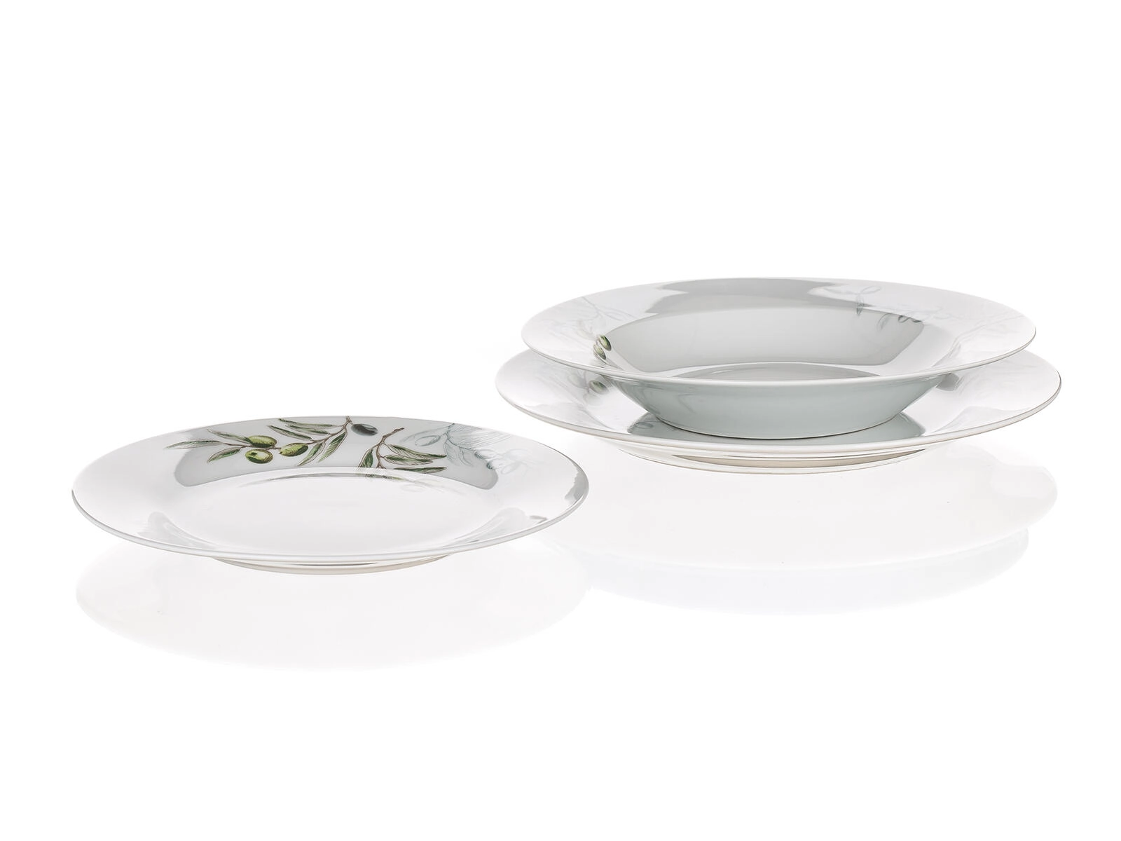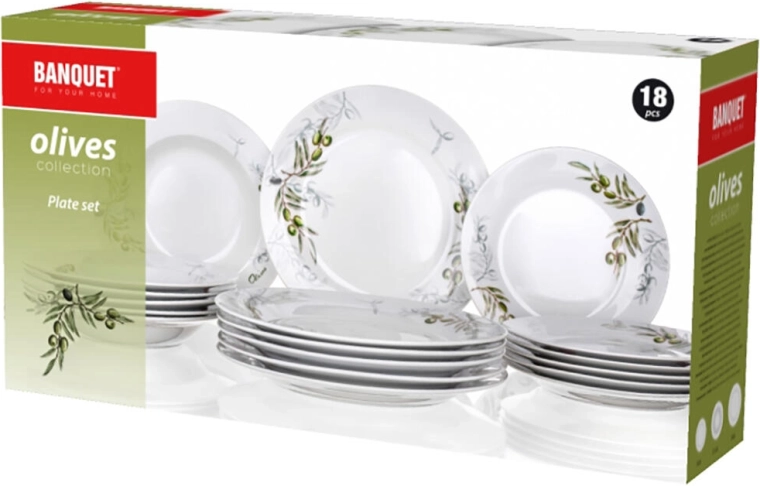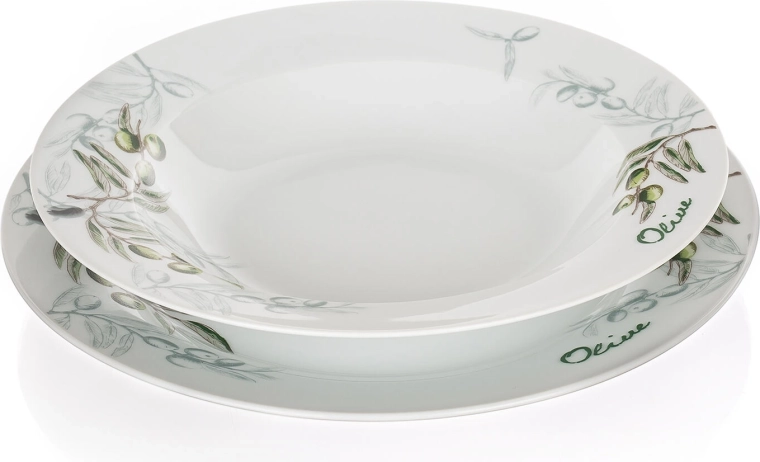 Sada je navržena pro moderní domácnosti – bezpečná pro mikrovlnnou troubu a snadno omyvatelná v myčce nádobí. Jemný dekor oliv dodá stolování středomořskou atmosféru a elegantní vzhled, který se hodí k většině stolních dekorů.