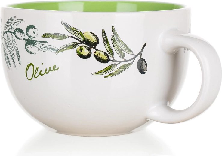 Velký keramický hrnek s motivem oliv a objemem 660 ml je ideální pro každodenní použití. Užijte si své oblíbené horké i studené nápoje ve stylu – praktický objem, odolná keramika a dekor olivy pro příjemnou atmosféru u stolu.