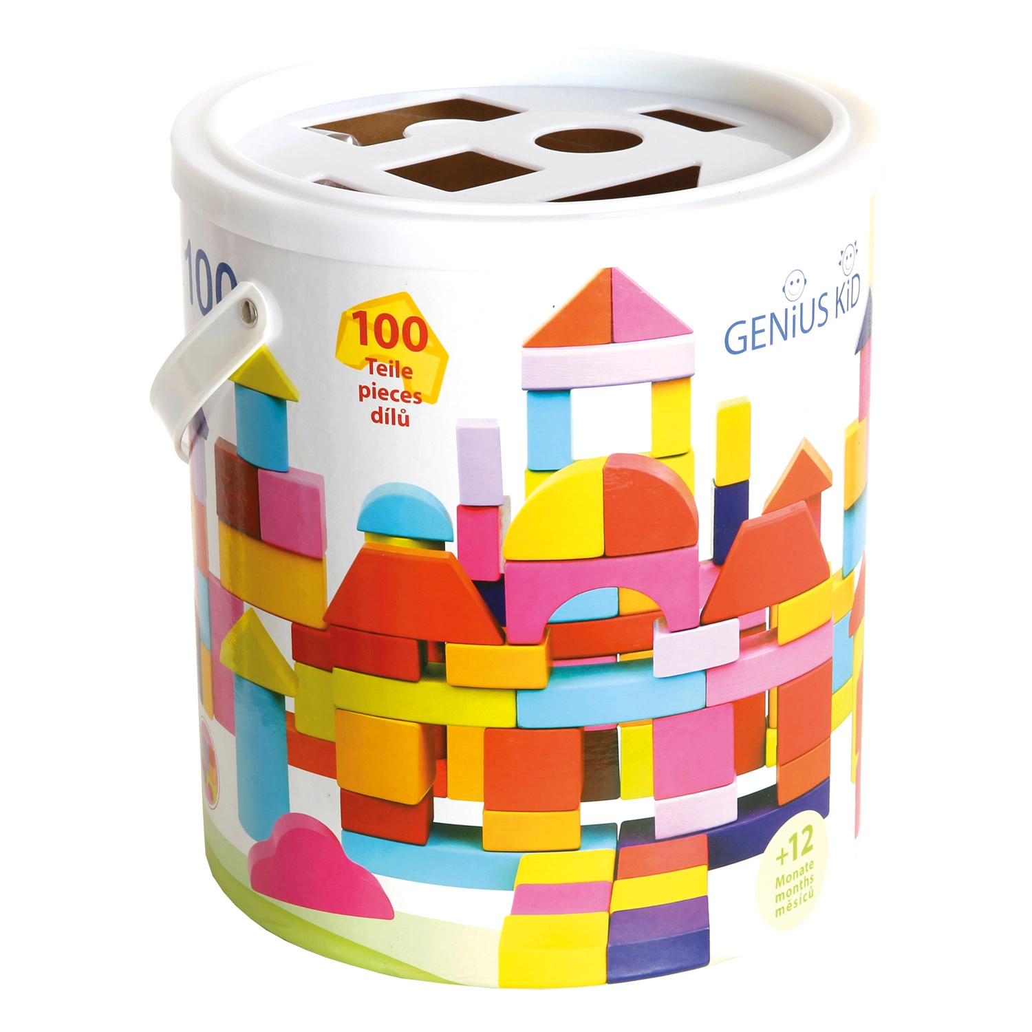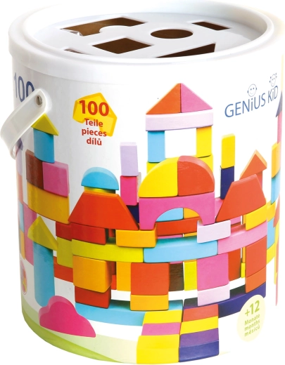 Tato bohatá sada dřevěných kostek v nových barvách přináší dětem nekonečné možnosti stavění věží, mostů i jednoduchých staveb. Praktické balení v kartonovém kyblíku usnadňuje ukládání a přenášení, zatímco víko s otvory funguje jako vkládačka pro procvičení logiky a trpělivosti.