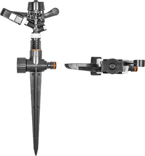 Integrovaná rychlospojka usnadňuje rychlé připojení k zahradní hadici a umožňuje propojení více postřikovačů pro rovnoměrné pokrytí větší plochy. S průměrem zavlažování 17 m dosáhnete efektivní a úsporné závlahy bez zbytečného plýtvání vodou.