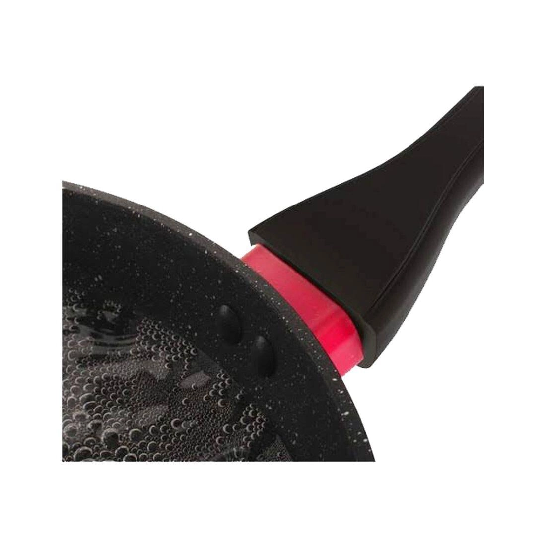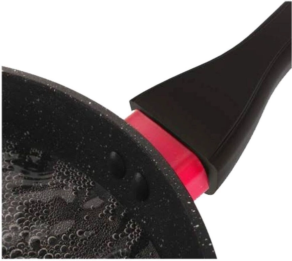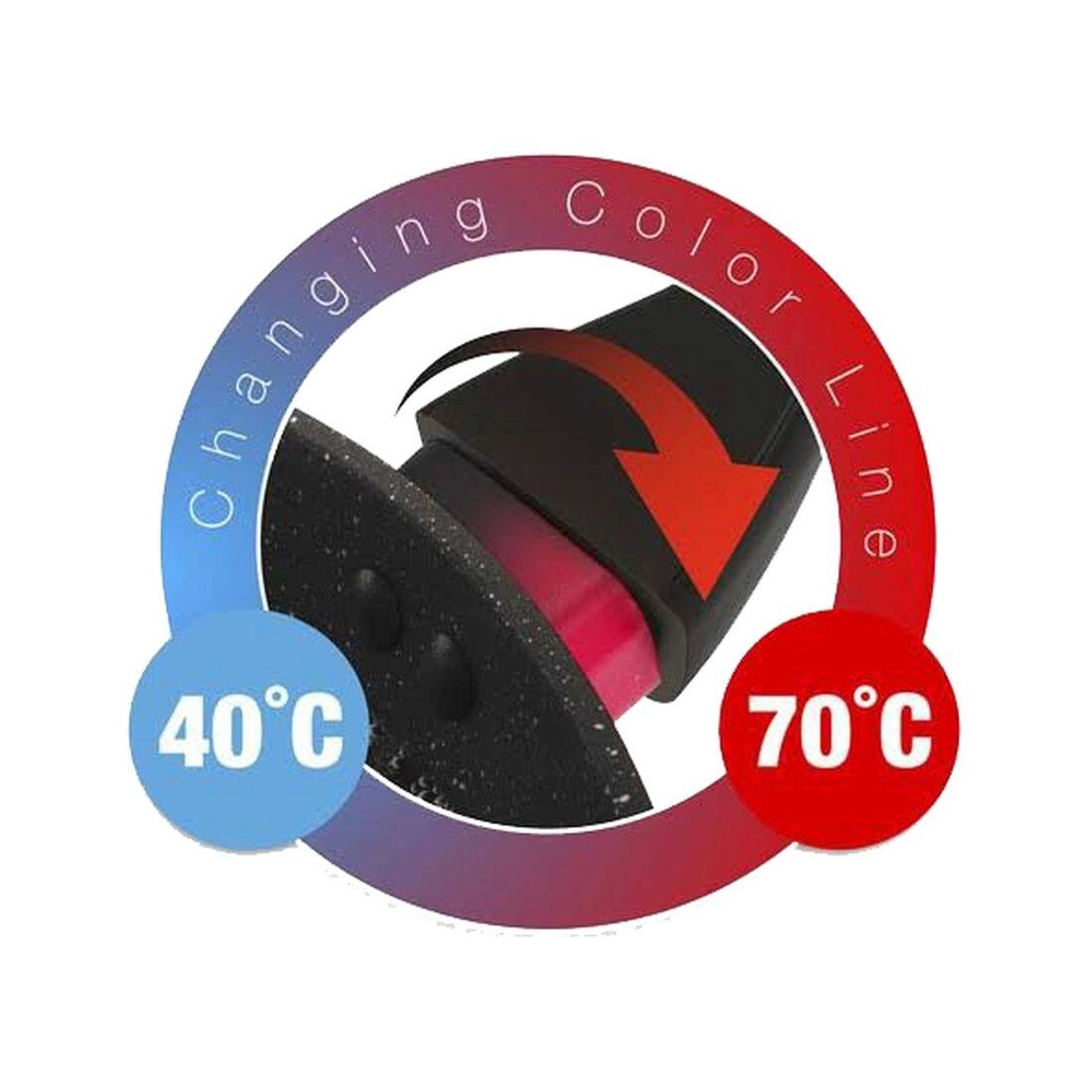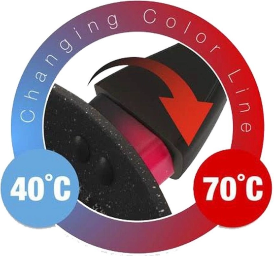 Unikátní teplotní prstenec nad rukojetí se postupně zbarvuje z černé do sytě červené od 40 °C do 70 °C, takže vždy víte, kdy je pánev připravena k plnému vaření. V balení najdete i ochrannou proložku v červené barvě pro bezpečné skladování bez poškrábání.