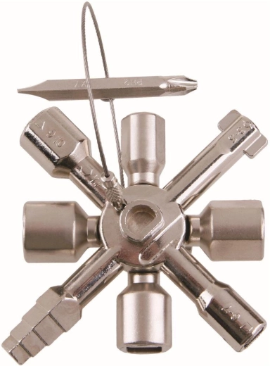 Univerzální klíč UNIKEY DB1 je nepostradatelný pomocník pro techniky, správce objektů i domácí kutily. Umožňuje otevírat a ovládat elektrické rozvaděče, plynové a vodní uzávěry, prvky klimatizace a ventilace i zařízení pro odvzdušňování topení. Díky kompaktnímu provedení se snadno vejde do kapsy či brašny.