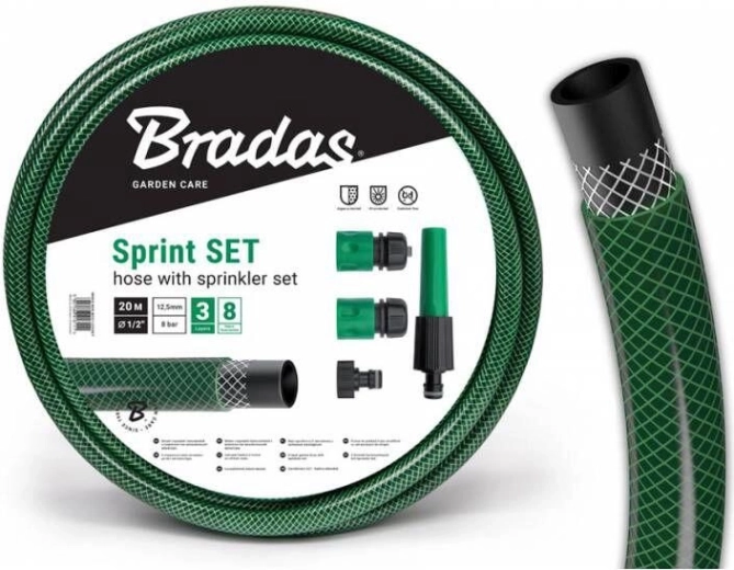 Kompletní zavlažovací set SPRINT přináší vše, co potřebujete pro pohodlné zalévání. Hadice 1/2″ (20 m) je vyrobena z měkčeného PVC, má 3 vrstvy a vyztuženou síťovinu pro vyšší odolnost a stabilní průtok. Neprůhledné provedení omezuje pronikání světla a tvorbu řas, takže si dlouhodobě udrží čistotu i pružnost.