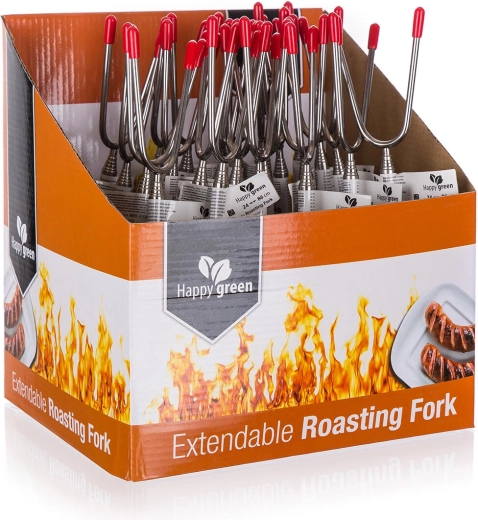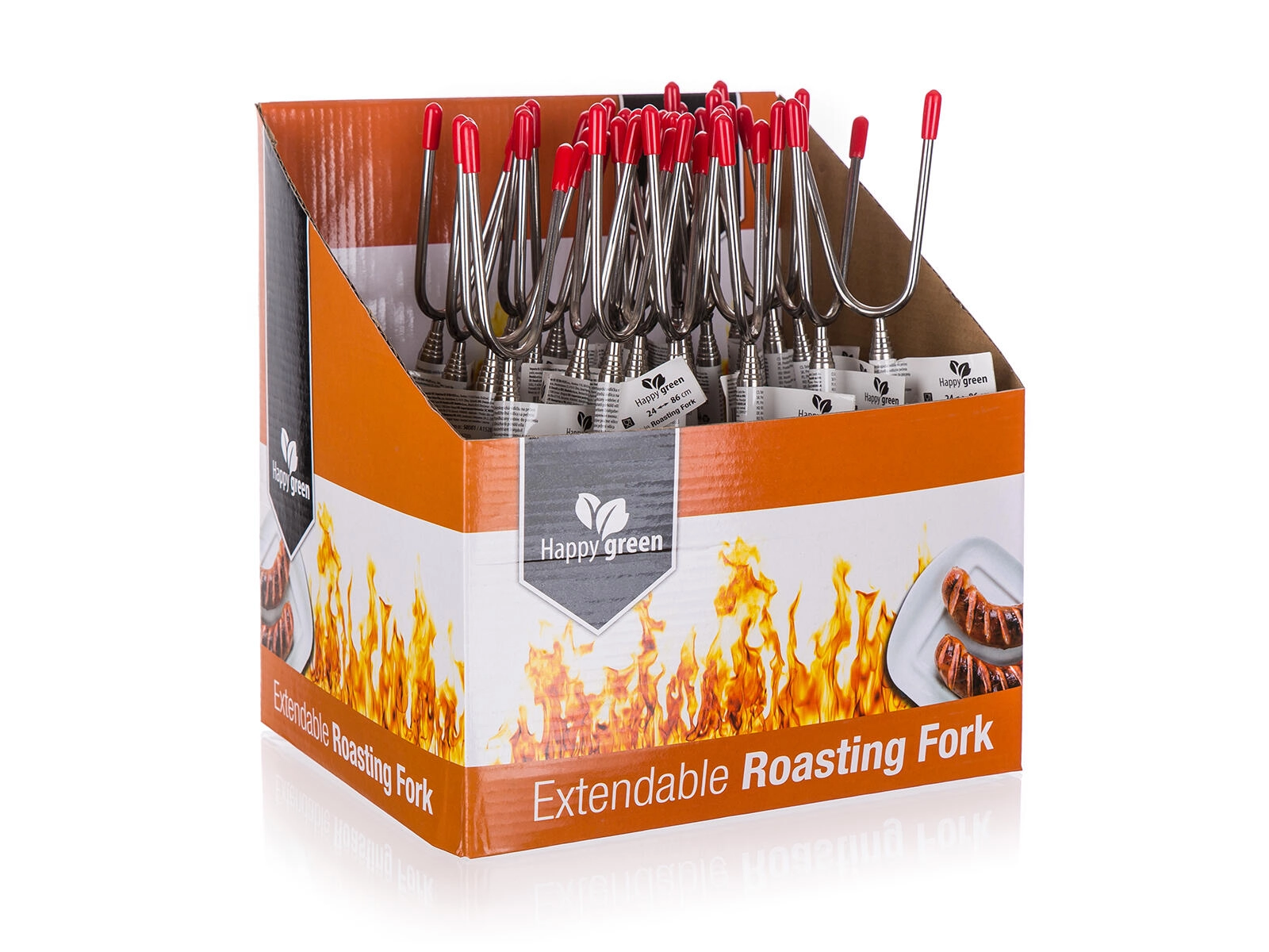 Praktická teleskopická opékací vidlice s nastavitelnou délkou 24–86 cm z nerezové oceli a pohodlnou PVC rukojetí. Ideální pro opékání špekáčků, klobás i zeleniny nad ohněm či grilem, se dvěma pevnými hroty pro bezpečné napichování.