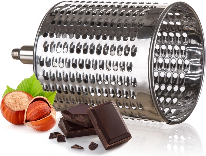 Praktické ruční struhadlo a kráječ 5v1 z nerezové oceli pro snadné strouhání, krájení a plátkování ořechů, čokolády, zeleniny, ovoce i tvrdých sýrů. Nabízí 5 výměnných bubnových nástavců, stabilní uchycení ke stolové desce a bezpečné pěchovadlo. Díly z nerezu se snadno čistí a jsou vhodné do myčky.