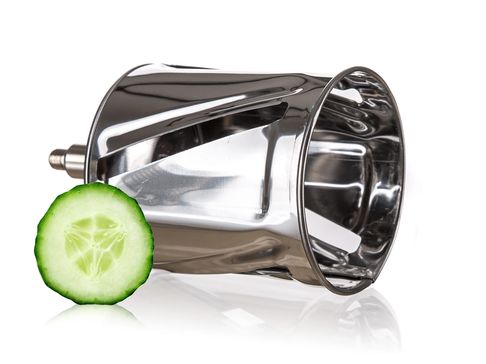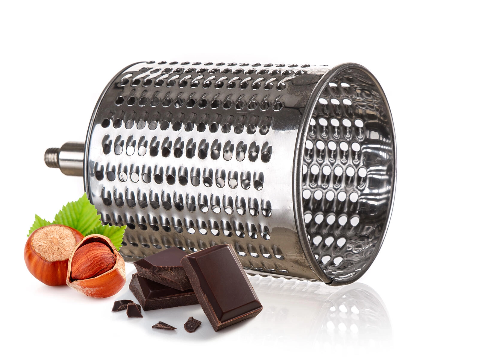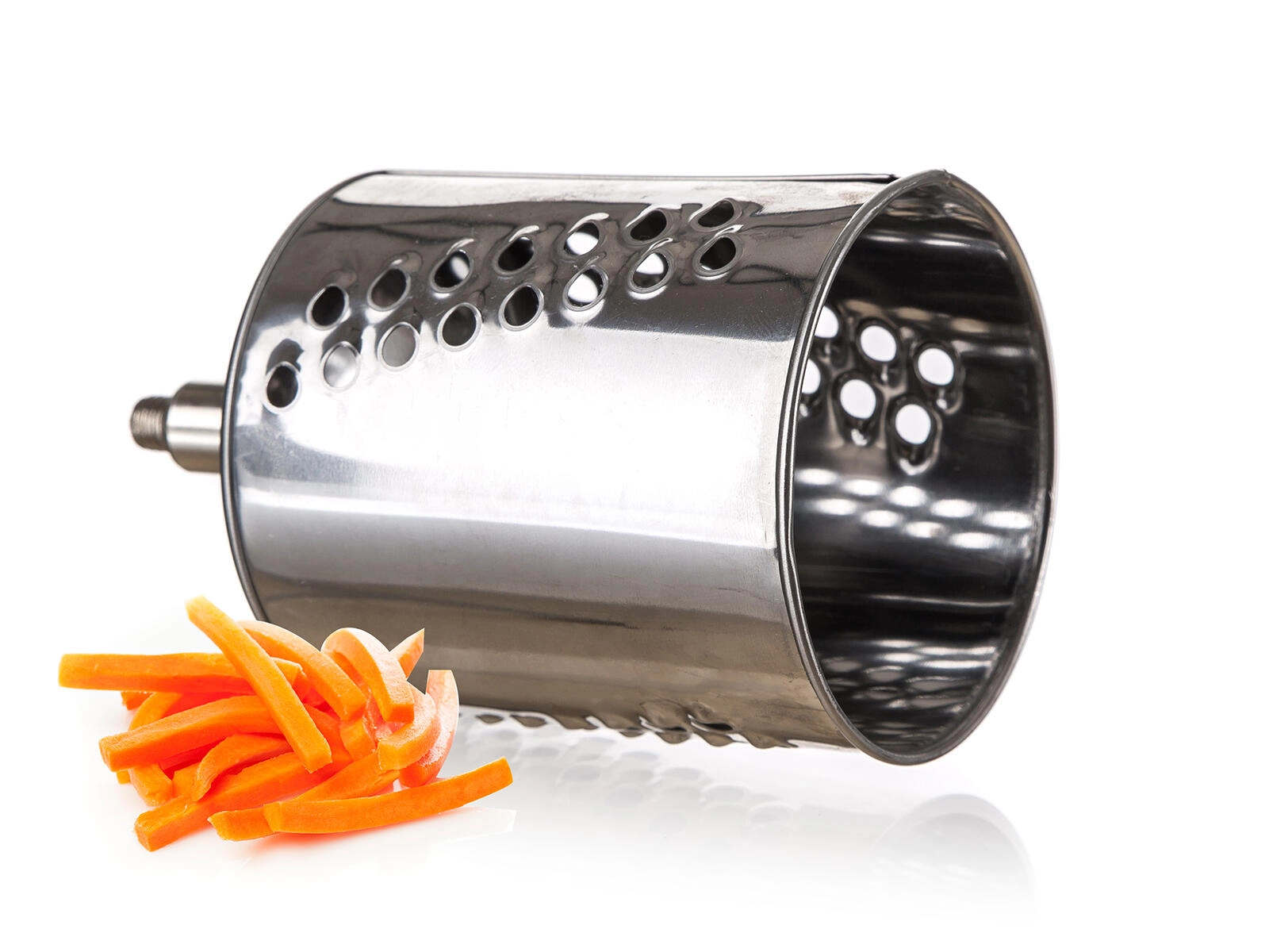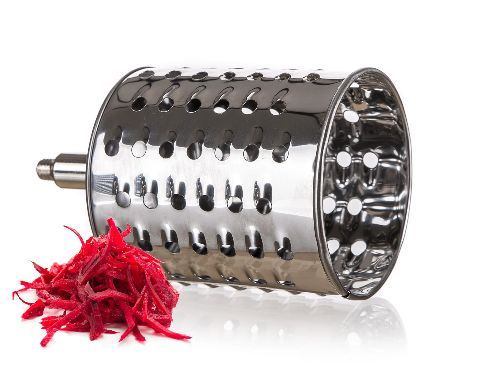 - 5 výměnných bubnů – jemné a hrubé strouhání, plátkování, julienne a speciál na ořechy/čokoládu.