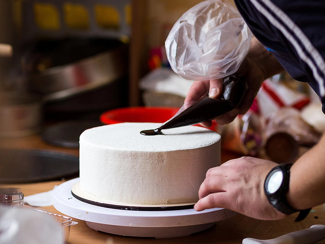 - Dekorování a plnění pokrmů, krémy, polevy, náplně