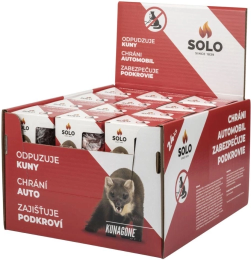 Kunagone SOLO je osvědčené řešení pro domácnosti i řidiče, kteří hledají jednoduchý způsob, jak zabránit kunám v poškozování kabeláže automobilu a v nežádoucím pobytu na půdě či v podkroví. Speciální vonná směs v sáčku vytváří přirozenou pachovou clonu, kterou se kuny vyhýbají.