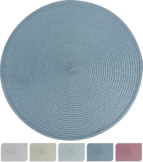 Stylové kulaté prostírání o průměru 38 cm z kombinace polypropylenu a tkaniny dodá vašemu stolu eleganci a zároveň jej spolehlivě ochrání před znečištěním a škrábanci. Vybírejte z moderního mixu barev pro snadné sladění s interiérem.