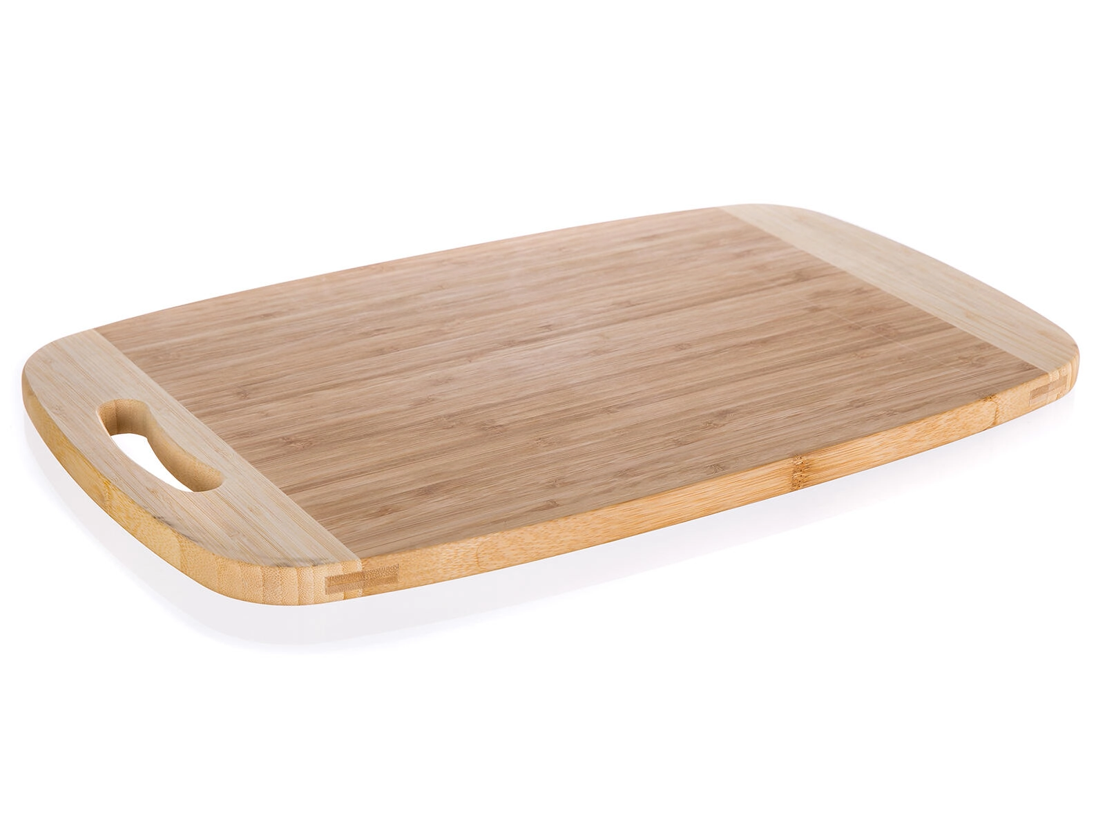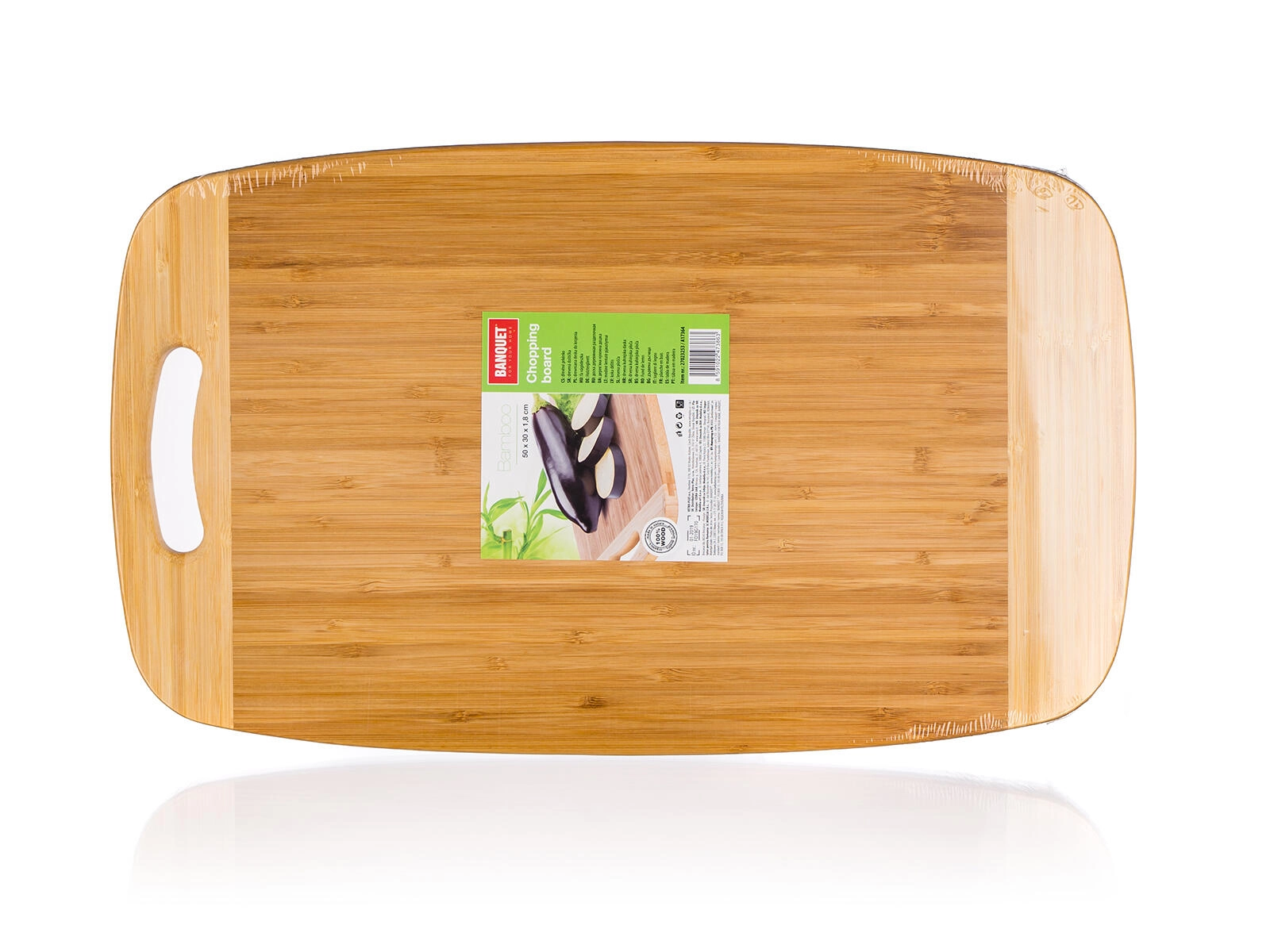 Praktické a odolné bambusové prkénko BRILLANTE o rozměrech 50 × 30 × 1,8 cm pro pohodlné krájení masa, zeleniny i pečiva. Díky své velké pracovní ploše usnadňuje porcování větších kusů potravin, má integrované madlo/otvor pro zavěšení a pevnou, nožům šetrnou bambusovou plochu v elegantním dvoubarevném provedení.