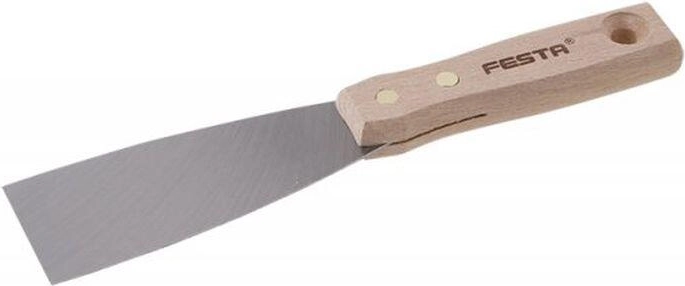 Praktická a spolehlivá špachtle FESTA usnadní každé renovační a malířské práce. Díky pevné ocelové čepeli a pohodlné dřevěné rukojeti zvládnete přesné nanášení tmelů i efektivní odstraňování starých nátěrů.