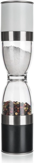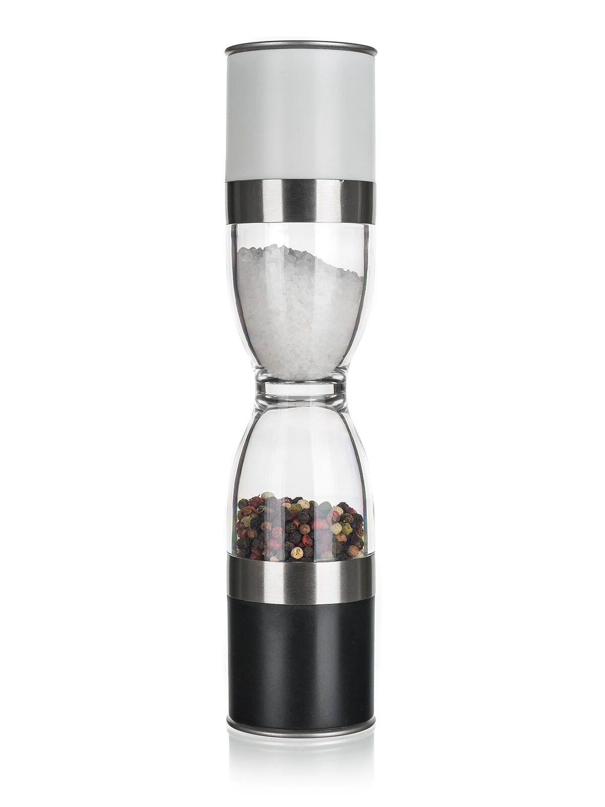 Objevte pohodlí 2v1: jeden nástroj pro mletí soli i pepře z každé strany. Transparentní komory ihned ukážou obsah i jeho množství, takže přesně víte, kdy doplnit. Nerezový vzhled skvěle zapadne do moderní kuchyně a keramický mechanismus zajistí rovnoměrné a trvanlivé mletí.