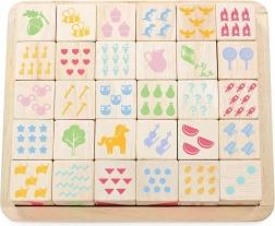 - 30 kostek + dřevěná podložka pro třídění a ukládání
