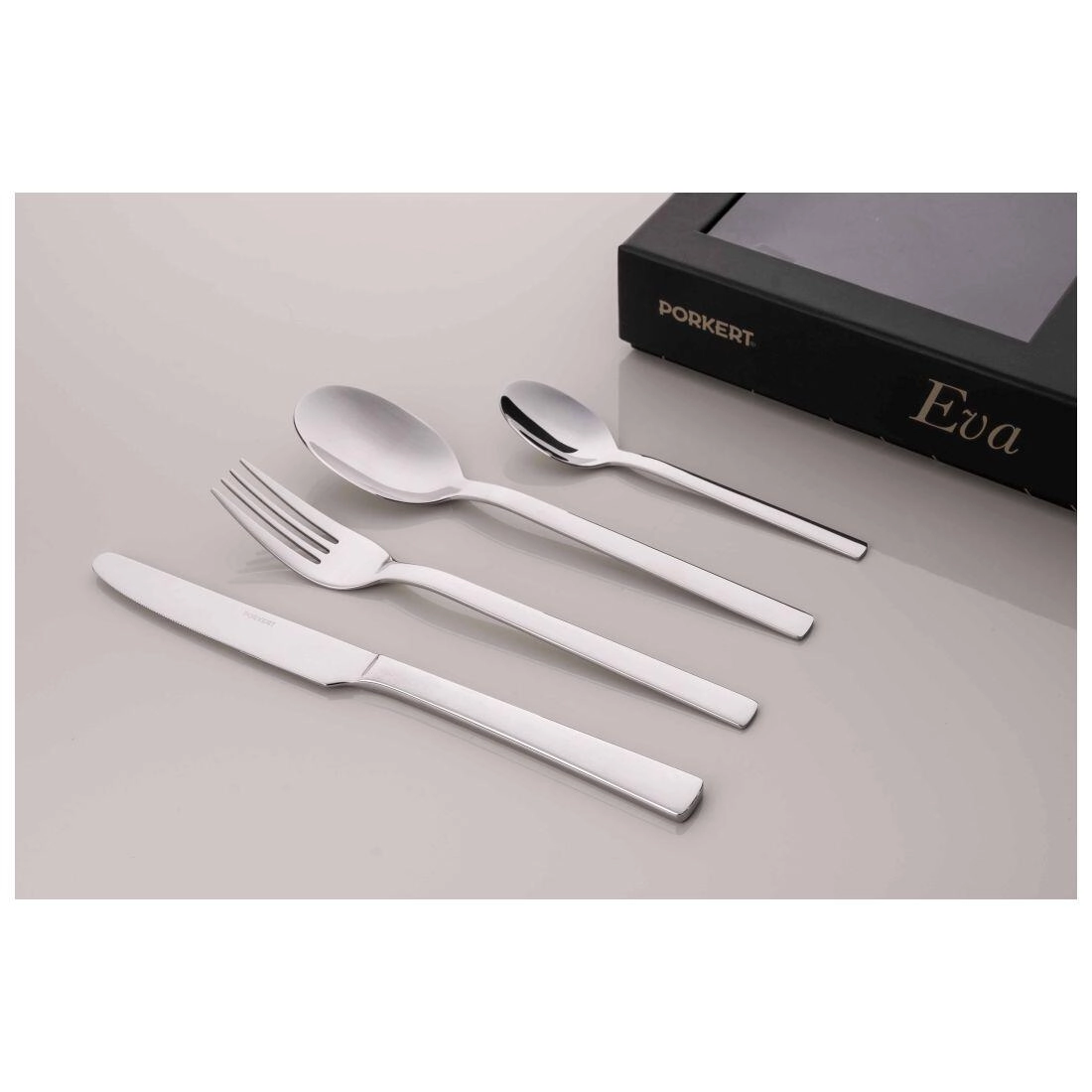 Vraťte se k jednoduché eleganci s příborovou sadou Eva. Nadčasové tvary, čisté linie a precizní zpracování zaručují, že se tato sada stane přirozenou součástí vašeho stolování. Nerezová ocel vysoké jakosti zajišťuje dlouhou životnost a snadnou údržbu.