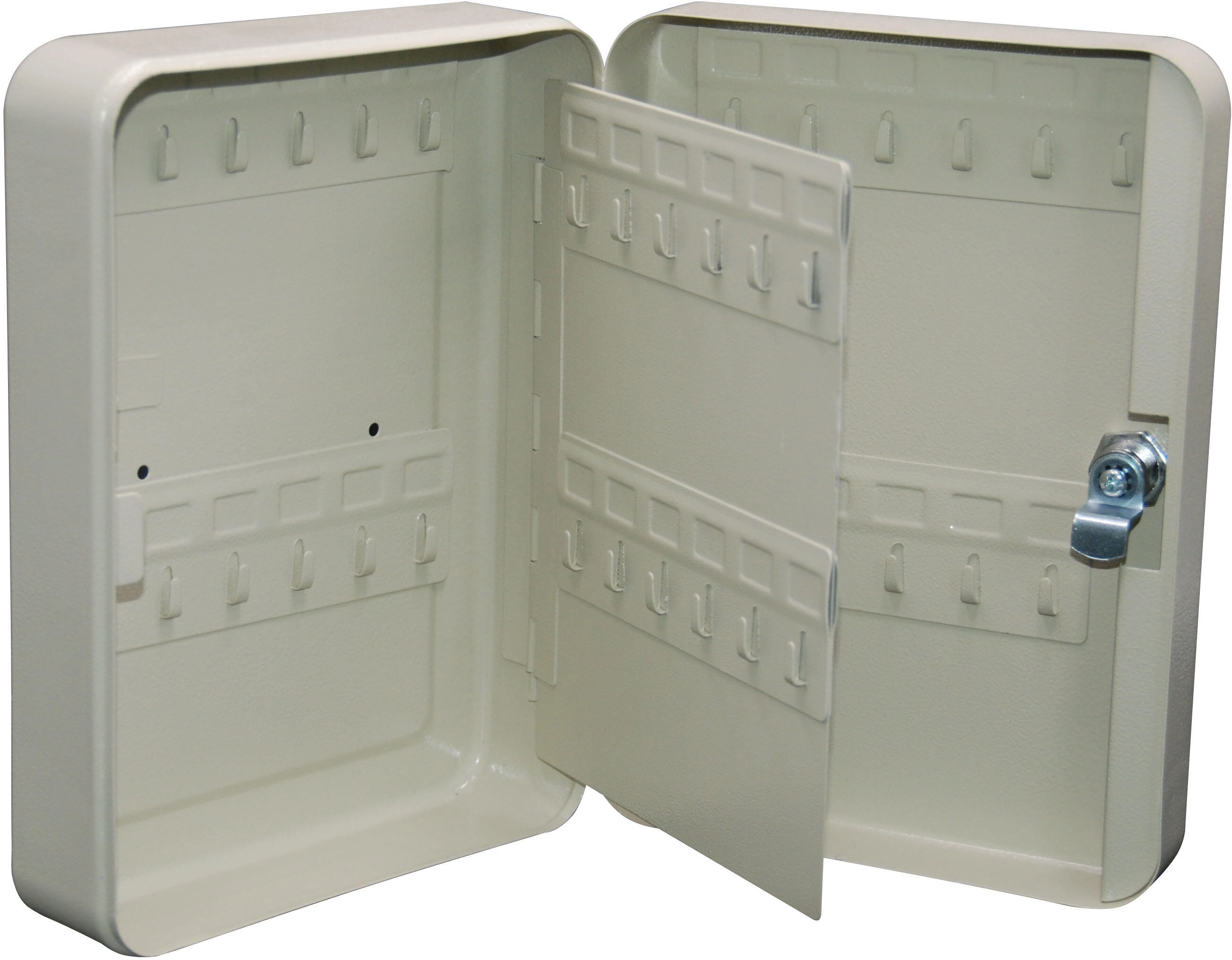 Udržte klíče vždy po ruce a na svém místě. Tato uzamykatelná skříňka na klíče pojme až 48 klíčů, čímž je ideální volbou pro kanceláře, recepce, školy, dílny i bytové domy. Díky montáži na zeď šetří místo a poskytuje rychlý přístup oprávněným osobám.