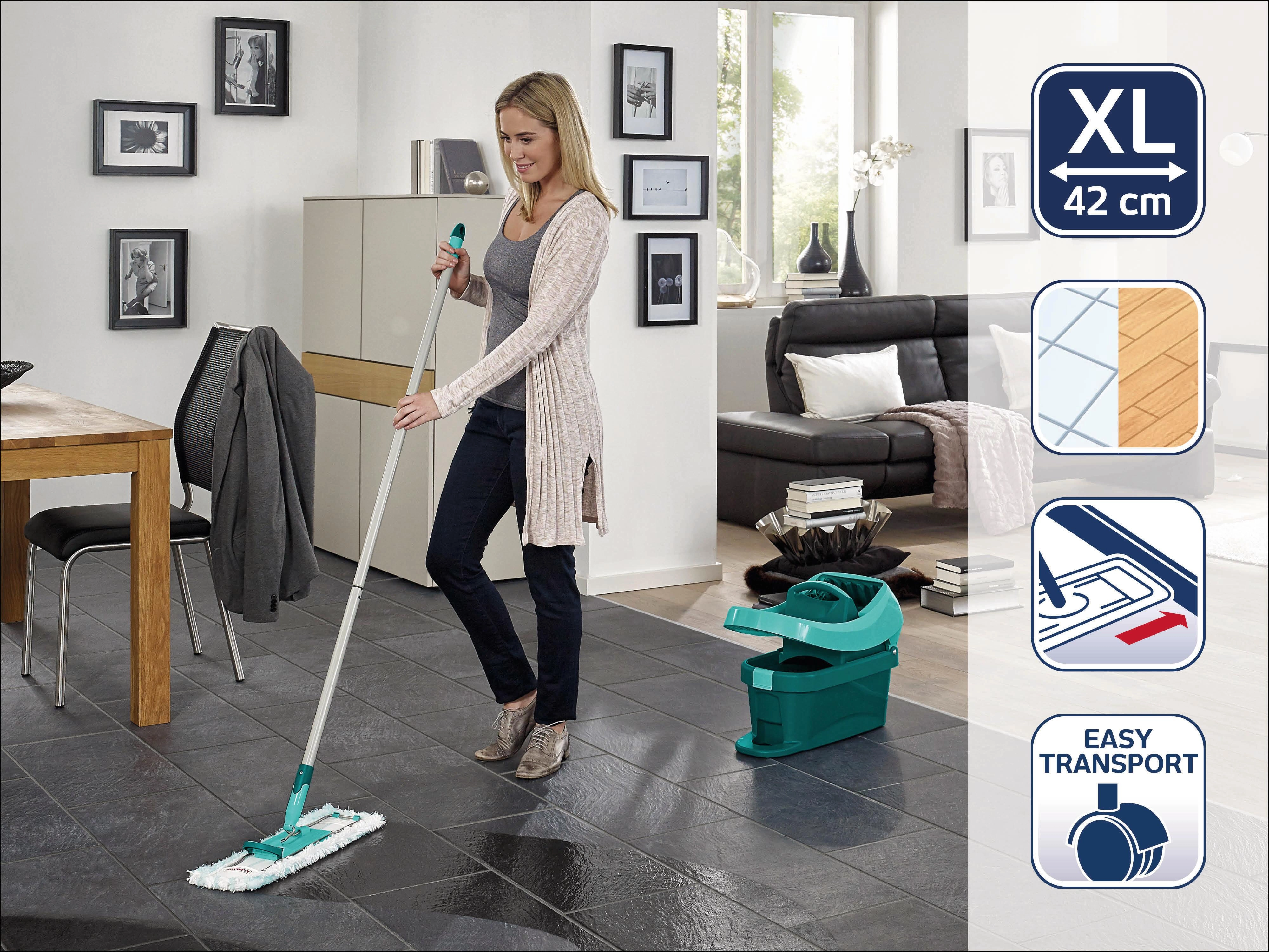 Set LEIFHEIT PROFI přináší profesionální úroveň úklidu do každé domácnosti. Široký záběr 42 cm a vysoce savý mikrovláknový návlek si poradí s prachem, šmouhami i zaschlými skvrnami. Díky kloubu se mop elegantně přizpůsobí prostoru a snadno se dostane pod postel či skříň.