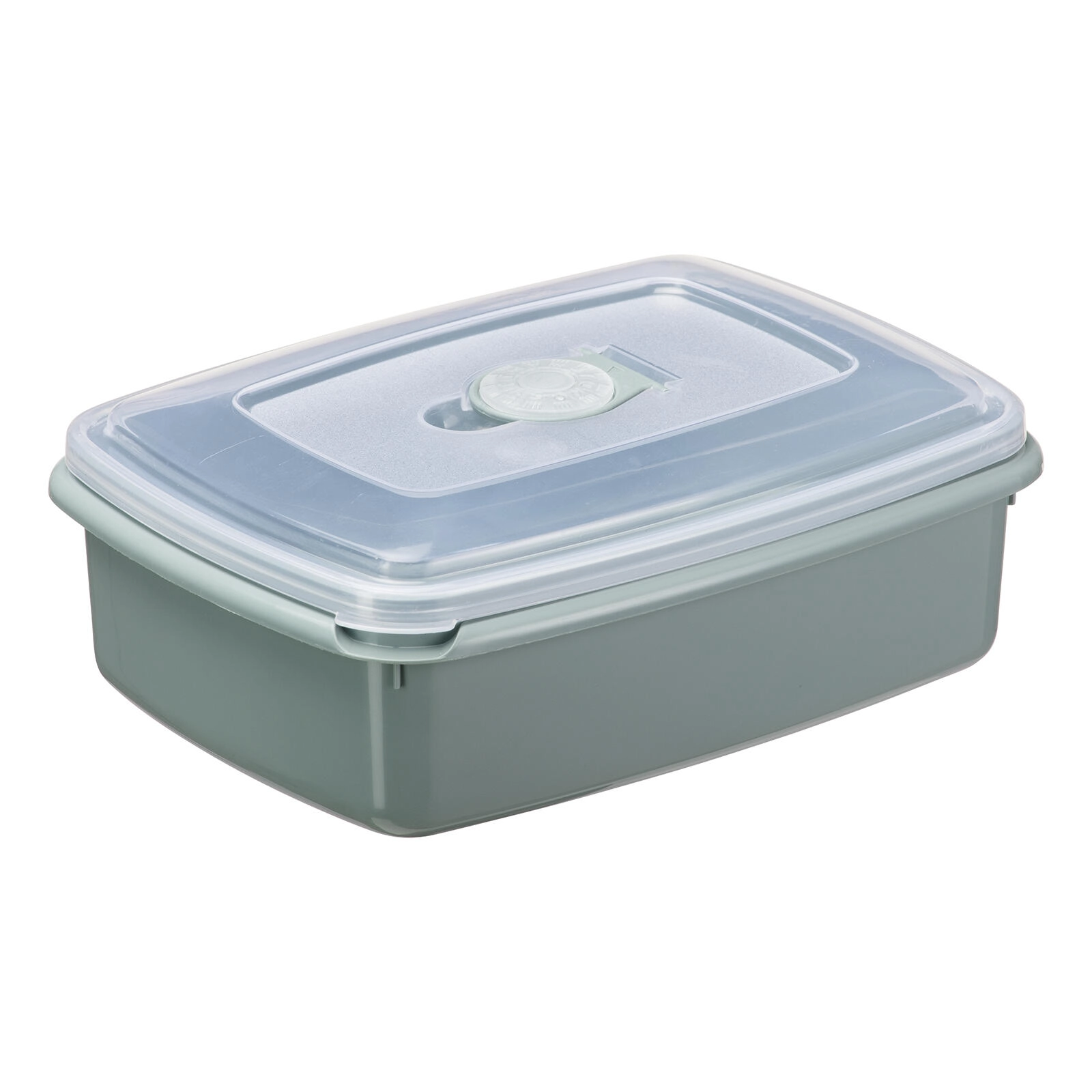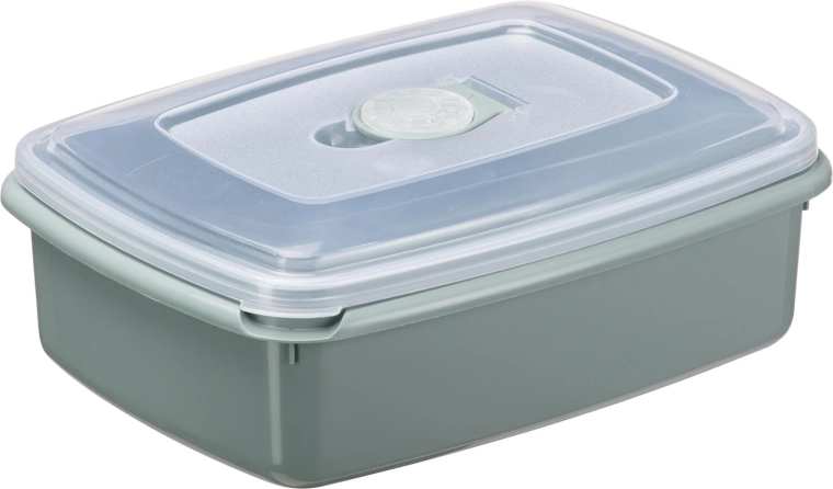 Praktická plastová dóza o objemu 1,3 l pro každodenní použití v kuchyni. Je vhodná do mikrovlnné trouby, lednice i mrazničky, má parní ventil pro bezpečný ohřev a průhledné víko pro rychlou kontrolu obsahu. Díky integrovanému časovači si snadno označíte datum uložení či spotřeby.