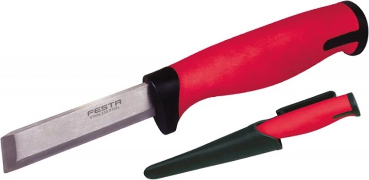 Univerzální truhlářské dláto FESTA pro přesnou práci v dílně i v terénu. Nabízí dvoustranné ostří, nerezovou zesílenou čepel 3 mm odolnou vůči úderům kladiva a ergonomickou dvoukomponentní rukojeť pro bezpečné a pohodlné ovládání. Součástí je ochranné pouzdro s klipem pro snadné nošení.