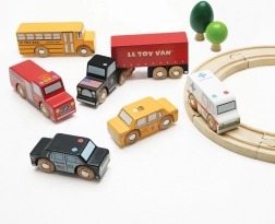 Vozidla jsou vyrobena eticky z FSC certifikovaného dřeva a ručně domalována ekologickými barvami. Díky kompatibilitě s populárními dřevěnými dráhami snadno rozšíříte dětský svět o další prvky a trasy. Sada je navržena tak, aby vydržela každodenní hraní a podporovala kognitivní dovednosti.