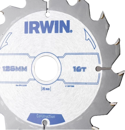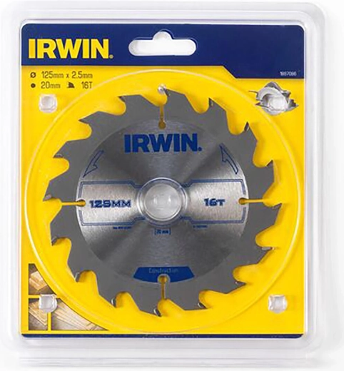 Univerzální pilový kotouč IRWIN o průměru 125 mm s 16 zuby a střídavým výbrusem ATB pro rychlé a čisté řezy do dřeva, dřevotřísky či překližky. Tenký řez EVO minimalizuje odpor, dilatační a chladicí otvory snižují zahřívání a kroucení. Tvrdokovové zuby v průmyslové kvalitě vydrží déle ostré a korozivzdorná povrchová úprava zaručí dlouhodobý výkon.