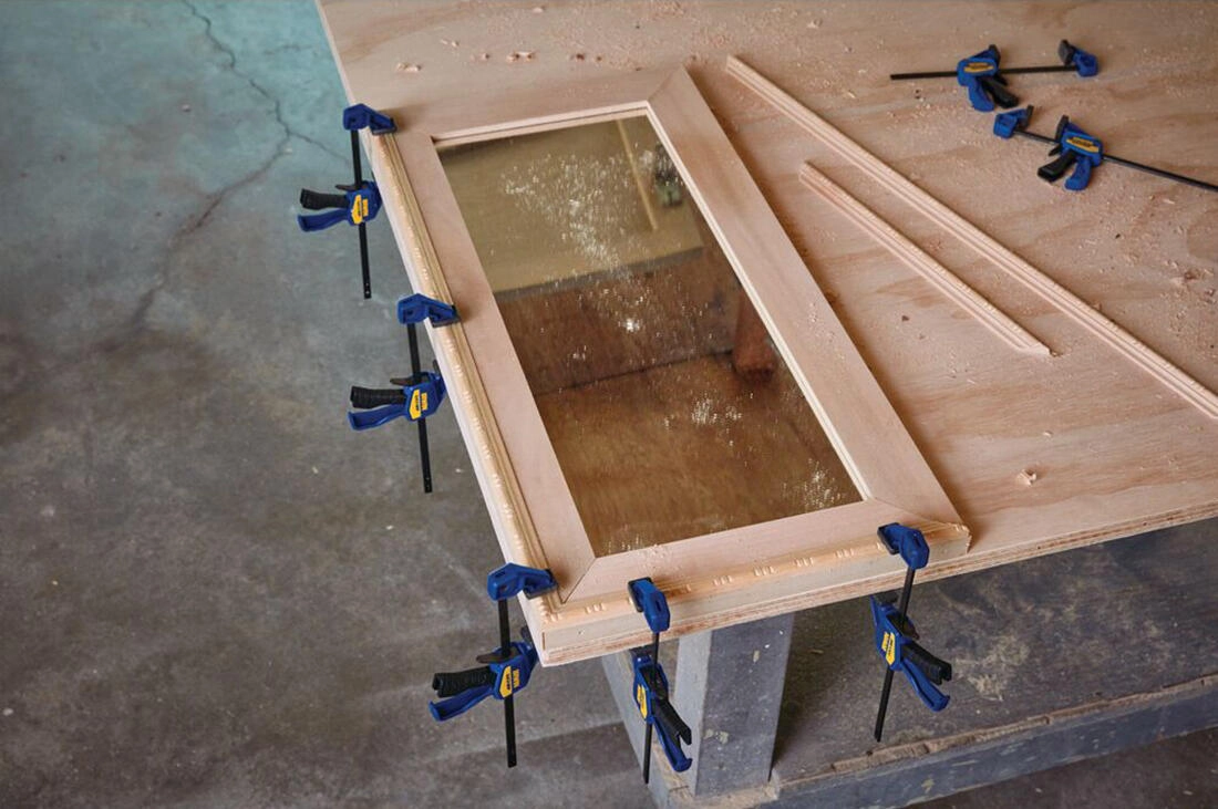 Rychloupínací spoušť umožňuje snadné dotažení i okamžité uvolnění jednou rukou — ideální při práci, kdy druhou ruku potřebujete na přesné usazení dílů.
