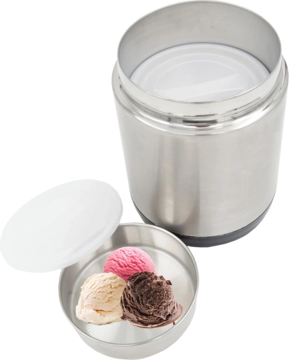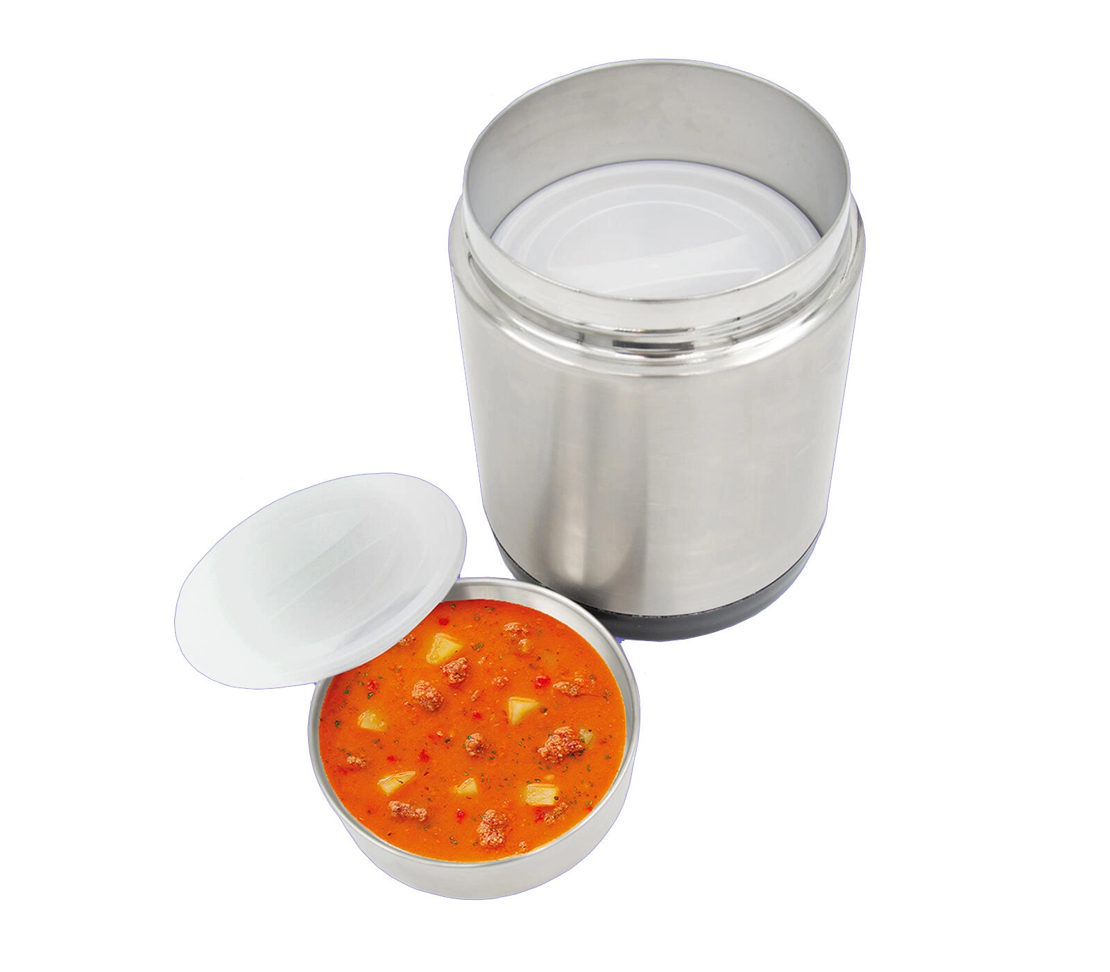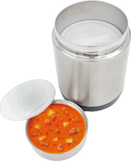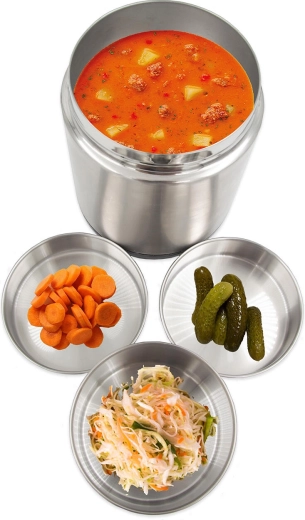 Po vyjmutí misek lze nádobu použít jako prostorný jídlonosič pro polévky, rizoto nebo omáčky. Široké hrdlo usnadňuje plnění i čištění a kvalitní nerez zajišťuje dlouhou životnost. Výborně se hodí pro každodenní použití v práci, při cestování, sportu i pro osoby, které se nestravují v restauracích. Termonádoba je vhodná také na studené dezerty, například zmrzlinu.