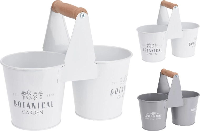 Stylový dvojitý kovový květináč s praktickou rukojetí rozzáří byt, balkon i zahradu. Nabízí mix barev a dekorů a díky kompaktním rozměrům se hodí na parapet i stolky. Lehký kov, vkusné dekory a snadné přenášení z něj dělají ideální doplněk pro bylinky, sukulenty či drobné květiny.
