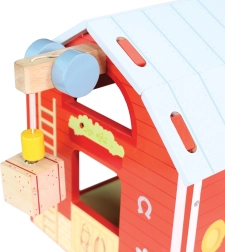 Stodola je vyrobena eticky z udržitelného dřeva a malována netoxickými barvami na vodní bázi. Je pevná, stabilní a připravená na každodenní hraní. Perfektně ji doplní figurky farmářů a zvířátek (nejsou součástí balení), díky nimž si děti vytvoří vlastní farmu.