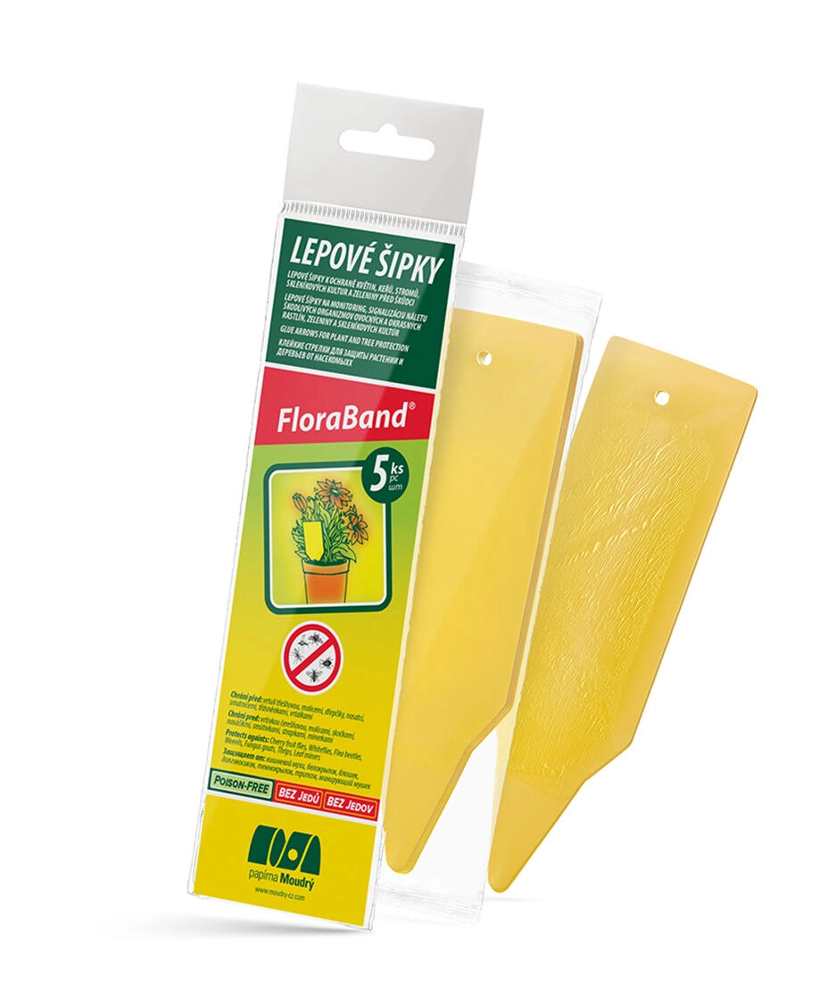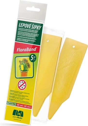 Praktické lepové šipky Flora Band účinně chrání pokojové i zahradní rostliny před škůdci. Díky výrazné žluté barvě škůdce spolehlivě přitahují a lepicí plocha je rychle zachytí. Balení obsahuje 5 ks šipek – 3 oboustranně lepicí a 2 jednostranně lepicí – pro snadné umístění přímo do substrátu.