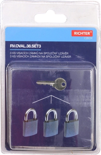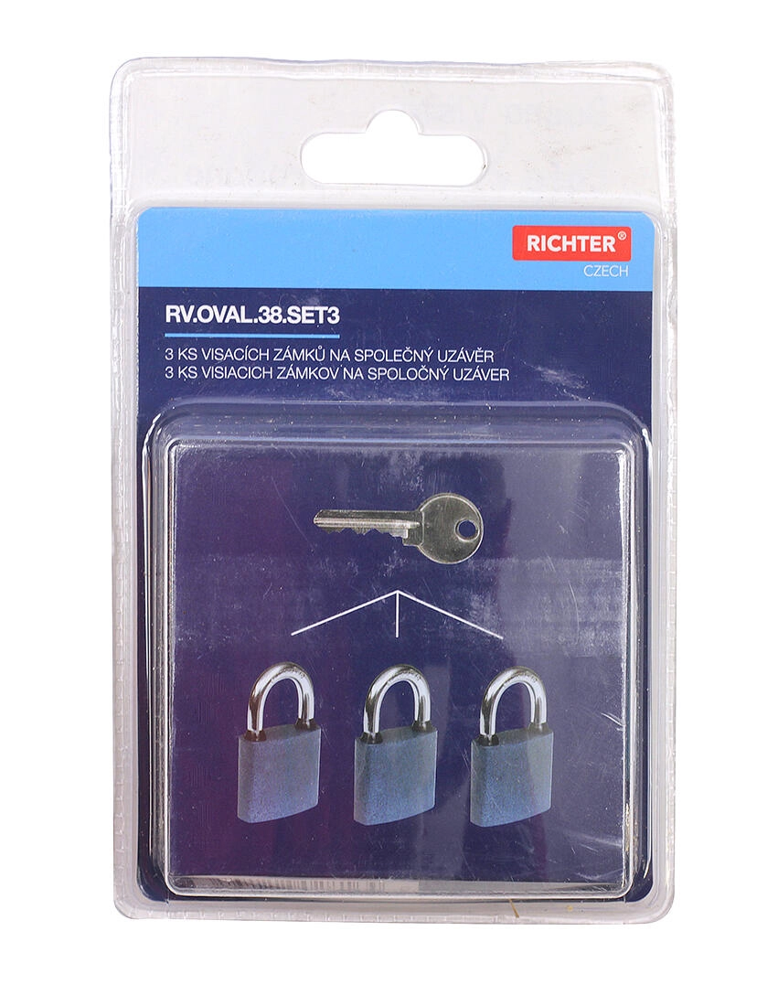 Sada visacích zámků OVAL 38 je ideální pro dílny, sklady, garáže i domácnosti, kde potřebujete více zámků s jedním klíčem. Robustní litinové tělo s modrým komaxitovým povrchem odolává opotřebení, zatímco třmen HARDENED se dvěma jistícími body zvyšuje ochranu proti vypáčení.