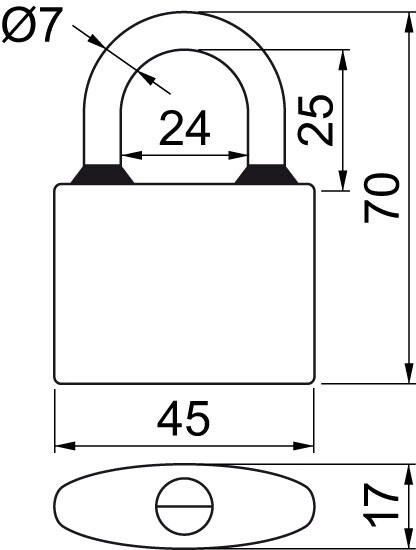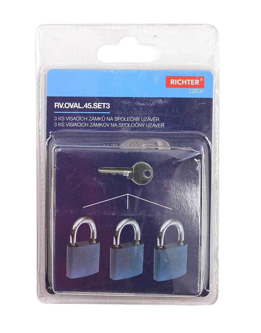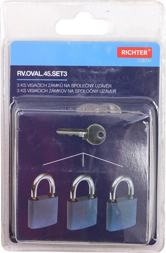 Sada visacích zámků OVAL 45 na společný klíč, 3 ks