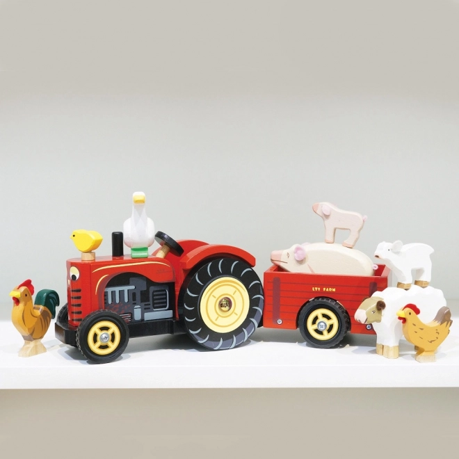 Objevte kouzlo farmářské hry s červeným traktorem od Le Toy Van. Tato klasická hračka, vhodná pro děti od 2 let, podporuje rozvoj motorických a kognitivních dovedností. Je vyrobena z udržitelných materiálů a ručně domalovaná ekologickými barvami, což zaručuje dlouhou životnost a bezpečnost pro vaše děti.