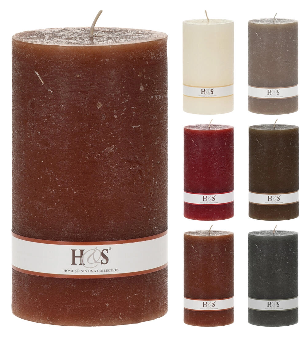 Rozměry 9 × 15 cm zajišťují stabilitu a delší hoření, zatímco jediný knot podporuje rovnoměrné tavení vosku. Svíčka je dostupná v mnoha oblíbených barvách – červená, zelená, bílá, tmavě hnědá, světle hnědá a béžová – takže ji snadno sladíte s ročním obdobím i dekoracemi.